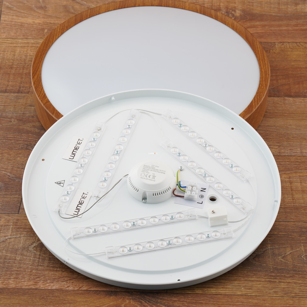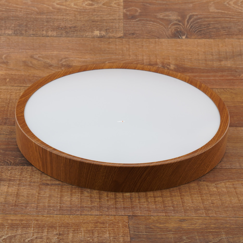 Lampa LED de tavan Musurita Eglo 98602, cu o putere de 36 W și un flux luminos de 3600 lumeni, oferă o iluminare albă caldă, cu o temperatură de culoare de 3000 K. Corp de iluminat în stil modern are o combinație de culori alb-lemn, un diametru de 440 mm și o înălțime de 75 mm. Modulul LED încorporat nu este reglabil, iar corpul de iluminat are protecție IP20, fiind potrivit pentru utilizare în interior. Este fabricat din plastic și oțel, ceea ce îi conferă durabilitate și un aspect curat. Produsul cântărește 1,76 kg și are dimensiuni de ambalare de 49 x 49 x 8 cm. Lampa include sursa de lumină și este fabricată de EGLO.