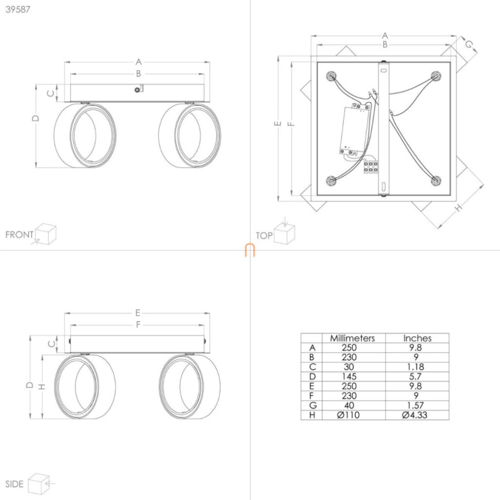 Lampa LED de tavan Albariza Eglo 39587 oferă o soluție modernă de iluminat pentru spațiile casnice. Lampa are patru module LED de 5 wați, care asigură un flux luminos total de 2320 lumeni la o temperatură de culoare albă caldă de 3000 K. Modulele LED încorporate garantează o durată lungă de viață și un consum redus de energie. Lampa nu este reglabilă. Designul minimalist este disponibil în alb și crom, fiind fabricat din aluminiu și oțel, conferind încăperii un aspect modern. Corp de iluminat are o lungime de 250 mm, o lățime de 250 mm și o înălțime de 145 mm, cu protecție IP20. Produsul cântărește 2,12 kg și este fabricat de EGLO.