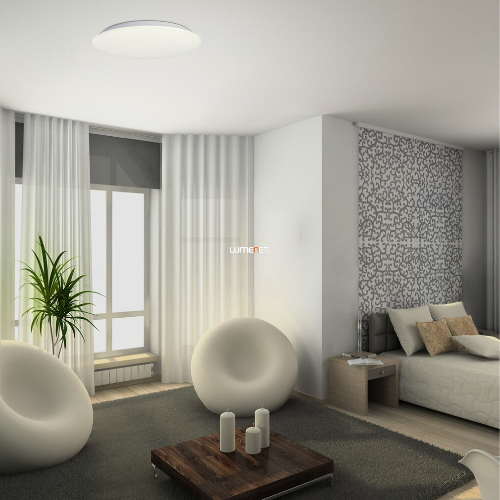 Lampa LED de tavan Rorik Rábalux 71125 are un design modern, alb, cu un diametru de 48 cm și o înălțime de 68 mm. Corpul de iluminat funcționează cu un modul LED încorporat de 45 W, care oferă un flux luminos de 3930 lumeni cu o temperatură de culoare de 4000 K în lumină albă rece. Corpul de iluminat din plastic are protecție IP20, fiind potrivit pentru utilizare în interior. Durata medie de viață este de 25.000 de ore, iar sursa de lumină nu poate fi înlocuită, deoarece modulul LED este parte integrantă a produsului. Ambalajul măsoară 48x48x7 cm, iar produsul cântărește 1,16 kg. Lampa de tavan oferă o soluție de iluminat eficientă din punct de vedere energetic și este ideală pentru iluminarea uniformă a spațiilor de locuit.