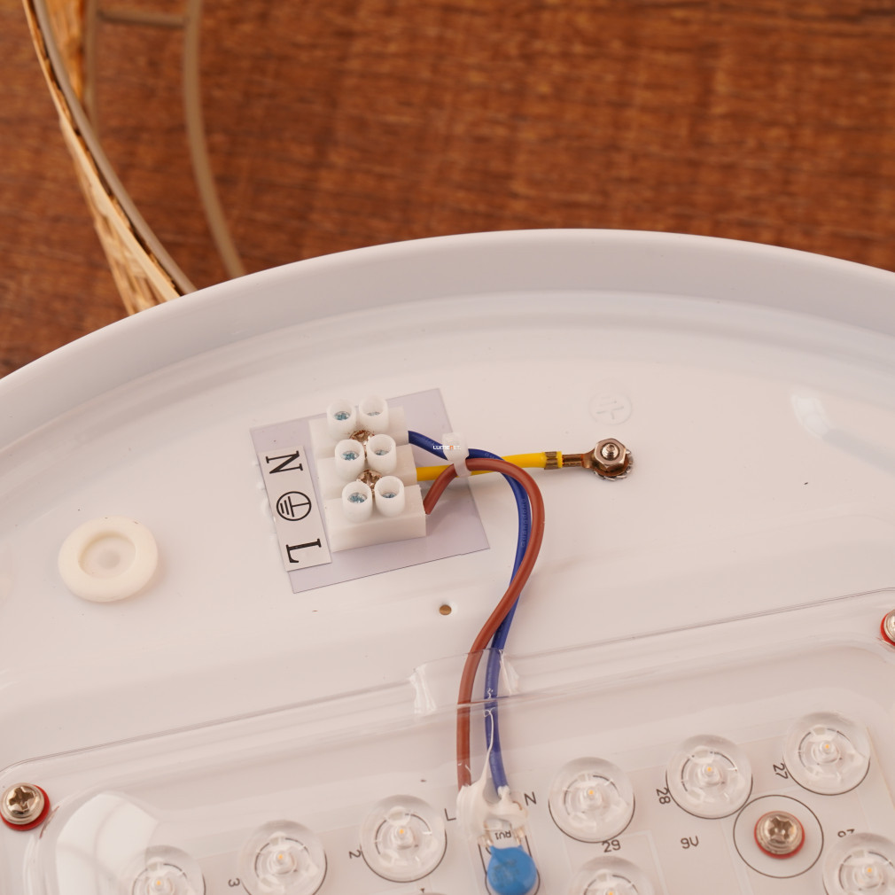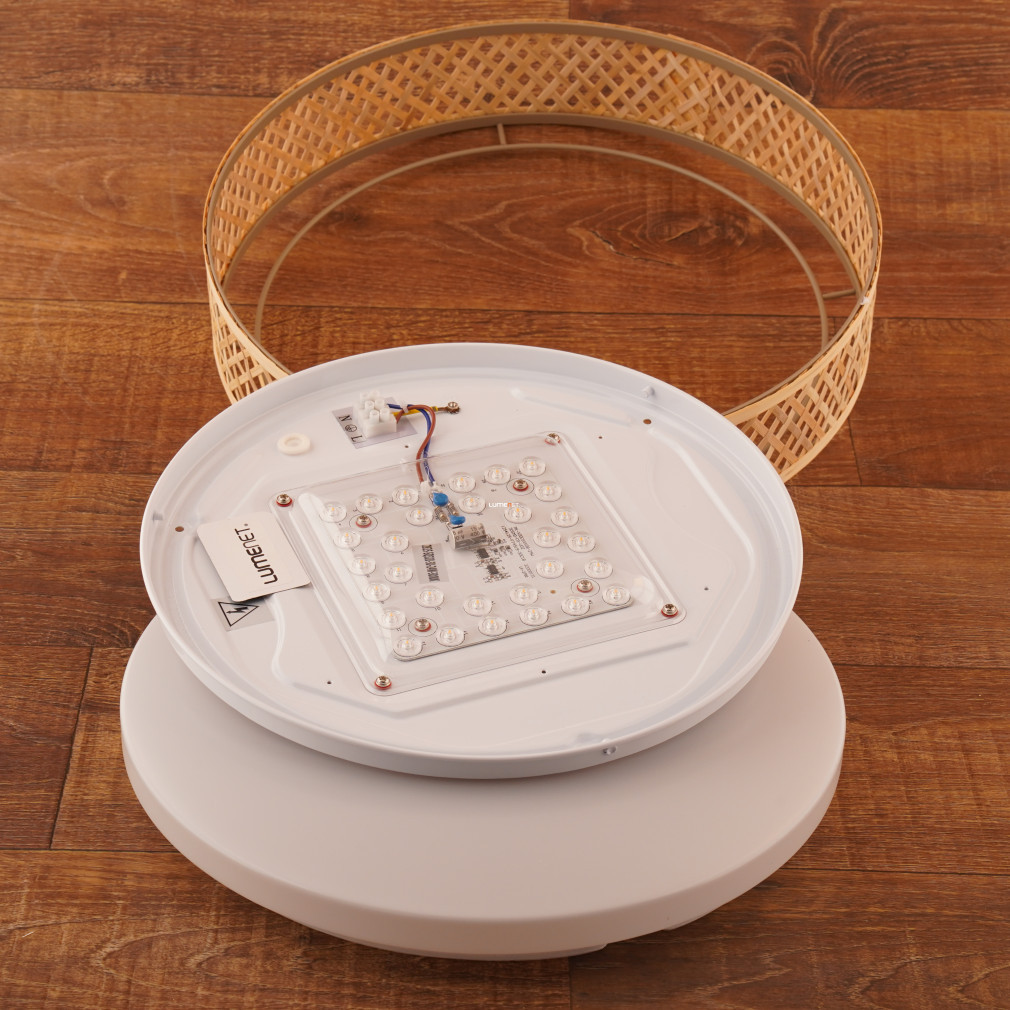 Lampa LED de tavan Luppineria Eglo 900464 are o putere de 24 W și un modul LED încorporat care oferă un flux luminos de 2400 lumeni. Lumina albă caldă, cu o temperatură de culoare de 3000 K, creează o atmosferă plăcută, iar gradul de protecție IP20 o face potrivită pentru utilizarea în interior. Lampa este disponibilă într-o combinație de culori maro și alb, fiind fabricată dintr-o combinație de oțel, plastic și lemn, cu un diametru de 380 mm și o înălțime de 80 mm. Produsul cântărește 1,53 kg, iar dimensiunile ambalajului sunt 10x40x40 cm. Lampa fabricată de Eglo utilizează tehnologia LED cu consum redus de energie, care asigură o durată lungă de viață și o distribuție uniformă a luminii în spațiul de locuit.