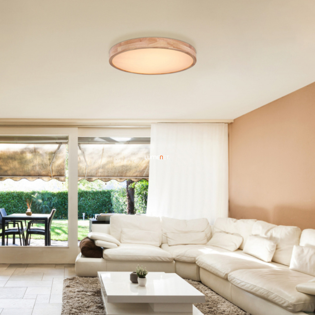 Lampa LED de tavan Rainer Globo 41745-48 are o putere de 48 wați și un modul LED încorporat care oferă un flux luminos de 3100 lumeni. Culoarea luminii lămpii poate fi modificată, cu o temperatură de culoare reglabilă între 3000 și 6000 Kelvin, permițându-vă să setați atât lumina albă rece, cât și cea caldă, folosind telecomanda inclusă. Corpul lămpii, în combinația de culori opal și lemn, este fabricat din metal și plastic, cu un diametru de 600 mm și o înălțime de 105 mm. Are un grad de protecție IP20, fiind potrivită pentru utilizare în interior. Dimensiunile ambalajului sunt 63 x 13 x 62 cm, iar produsul cântărește 4,88 kg. Sursa de lumină nu este înlocuibilă; lampa funcționează exclusiv cu un modul LED.