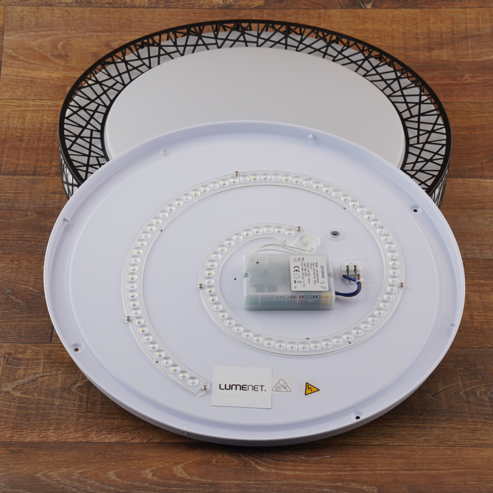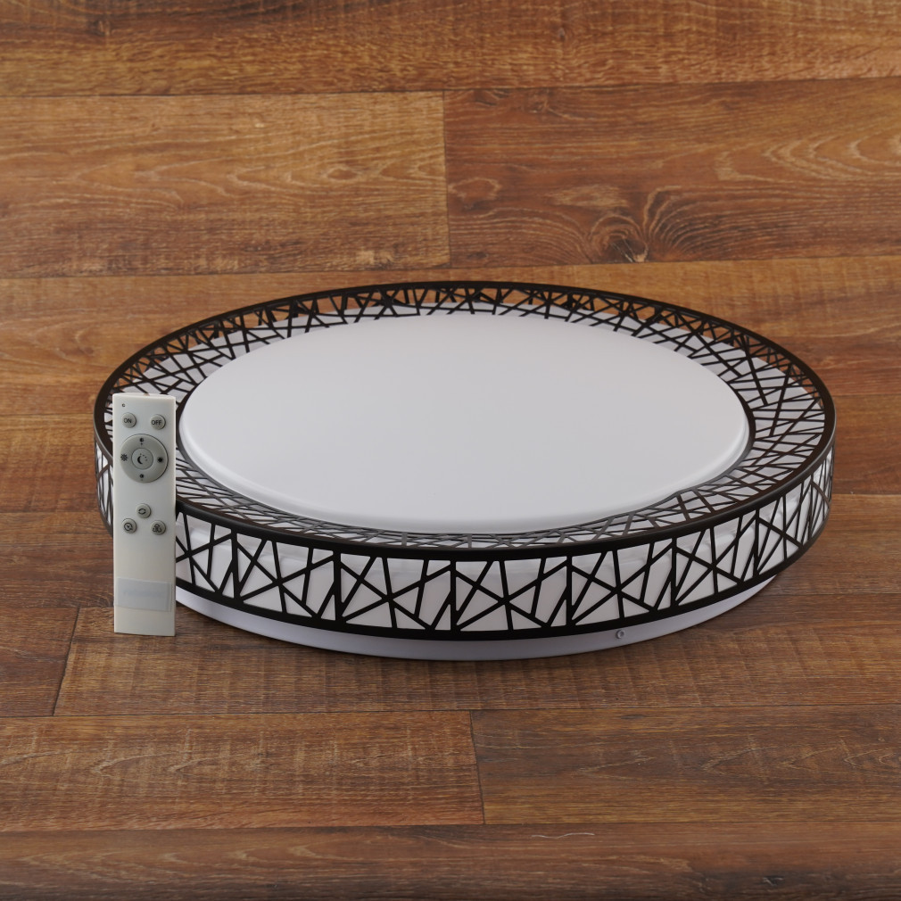 Cu designul său elegant în alb și negru și lumina albă reglabilă, această lampă LED de tavan cu telecomandă este alegerea perfectă pentru orice casă modernă. Cu aspectul său modern și elegant, această lampă LED de tavan cu telecomandă poate fi piesa centrală a casei dvs. Combinația de culori alb-negru a lămpii este elegantă și curată, făcând-o ușor de integrat în orice interior. Lampa este fabricată din metal și plastic, ceea ce asigură durabilitate și întreținere ușoară. Lampa are un diametru de 490 mm și o înălțime de 95 mm, ceea ce o face să aibă dimensiunea ideală pentru majoritatea camerelor. O caracteristică specială a lămpii este lumina albă reglabilă, care poate fi setată între 3000 și 6500 Kelvin, permițându-vă să creați întotdeauna atmosfera potrivită în casa dvs. Modulul LED de 48 W oferă o putere luminoasă de 3400 lumeni, suficientă pentru activitățile zilnice. Luminozitatea lămpii este reglabilă, astfel încât puteți seta cu ușurință luminozitatea dorită cu ajutorul telecomenzii sau comutatorului de perete inclus.Caracteristicile suplimentare includ funcții de memorie, temporizator și lumină de veghe pentru și mai mult confort. Cu o durată de viață medie de 25.000 de ore, oferă o soluție de iluminat fiabilă pe termen lung. Lampa este ușor de instalat, astfel încât să vă puteți bucura rapid de avantajele iluminatului modern.