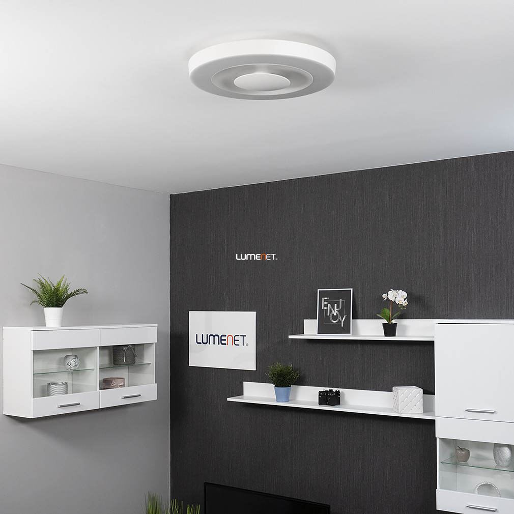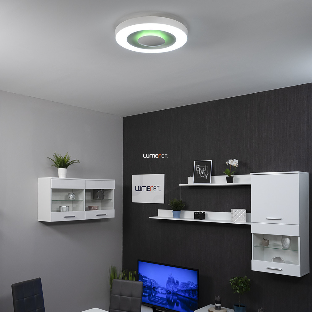 Lampa LED de tavan cu telecomandă Calvin-RGBW Rábalux 3015 oferă o soluție modernă de iluminat cu lumini albe și colorate (RGBW) reglabile. Modulul LED de 40 W oferă un flux luminos de 3200 lumeni, iar temperatura culorii poate fi reglată între 3000 și 6000 Kelvin pentru a se adapta diferitelor cerințe de iluminare. Corpurile de iluminat pot fi controlate prin telecomandă, ceea ce permite reglarea ușoară a luminozității și a culorilor, precum și accesul la funcții suplimentare, cum ar fi memoria, temporizatorul și modul de iluminare nocturnă. Produsul are protecție IP20, un diametru de 500 mm și o înălțime de 105 mm. Carcasa lămpii este realizată dintr-o combinație de metal și plastic de culoare albă. Modulul LED integrat asigură o durată de viață lungă de până la 30.000 de ore, făcând din lampa de tavan Calvin-RGBW Rábalux 3015 o soluție eficientă din punct de vedere energetic și durabilă pentru iluminatul casei.