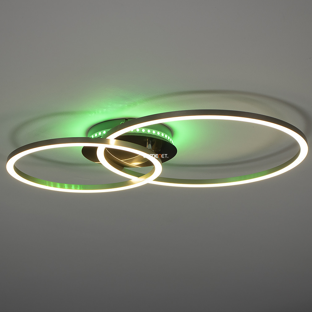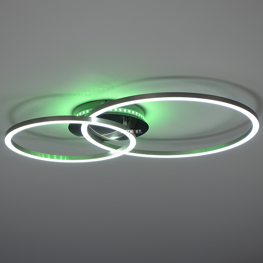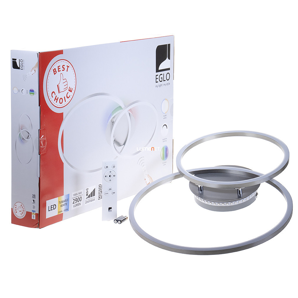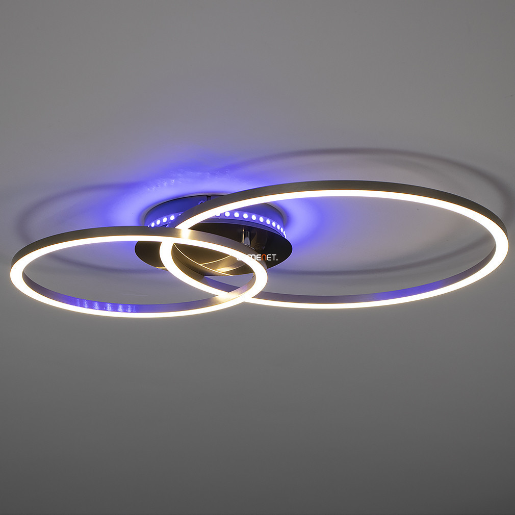 Lampa LED de tavan Palmaves 3-RGBW Eglo 75607 oferă o soluție modernă de iluminat care poate fi controlată prin telecomandă, permițând reglarea luminozității și a temperaturii culorii între 3000 și 6500 Kelvin, în funcție de necesități. Modulele LED de 9,5 și 12 wați oferă un flux luminos total de 1650 lumeni, iar pe lângă lumina albă variabilă este disponibilă și iluminarea RGBW. Corp de iluminat este disponibil în culorile nichel, argintiu și alb și este fabricat din aluminiu, oțel, sticlă și plastic, conferindu-i un aspect modern. Produsul are protecție IP20, măsoară 550 mm lungime și 390 mm lățime și este alimentat de două baterii AAA, care nu sunt incluse în pachet. Modulul LED este încorporat, astfel încât nu este necesară o sursă de lumină separată.