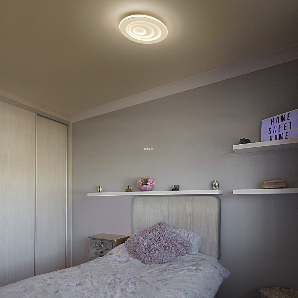 Lampa LED de tavan Ledvance (Orbis Spiral Round) oferă o iluminare albă caldă, cu o temperatură de culoare de 3000 K, o putere de 38 W și un flux luminos de 1900 lumeni. Modulul LED integrat funcționează la o tensiune nominală de 220-240 V, nu este reglabil și oferă un indice de redare a culorilor de 80. Corpul de iluminat din oțel alb are un diametru de 365 mm și o înălțime de 56 mm, cu un grad de protecție IP20. Tehnologia LED cu consum redus de energie și o durată de viață medie de 30.000 de ore asigură o funcționare fiabilă pe termen lung. Corpul de iluminat are o eficiență luminoasă de 50 lm/W, iar dimensiunile ambalajului sunt de 42x42x7 cm. Produsul este fabricat de Ledvance.