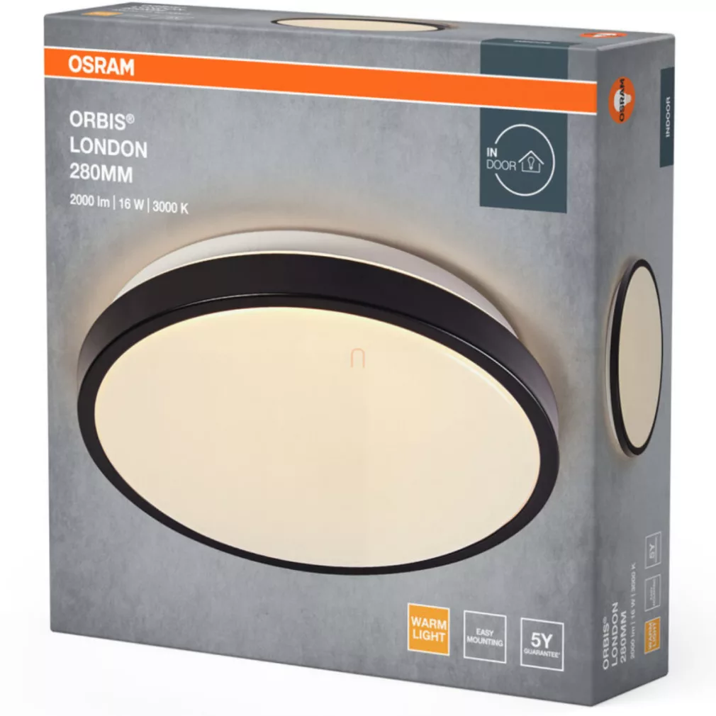 Lampă LED de tavan Osram 16 W, alb cald, negru (Orbis London)