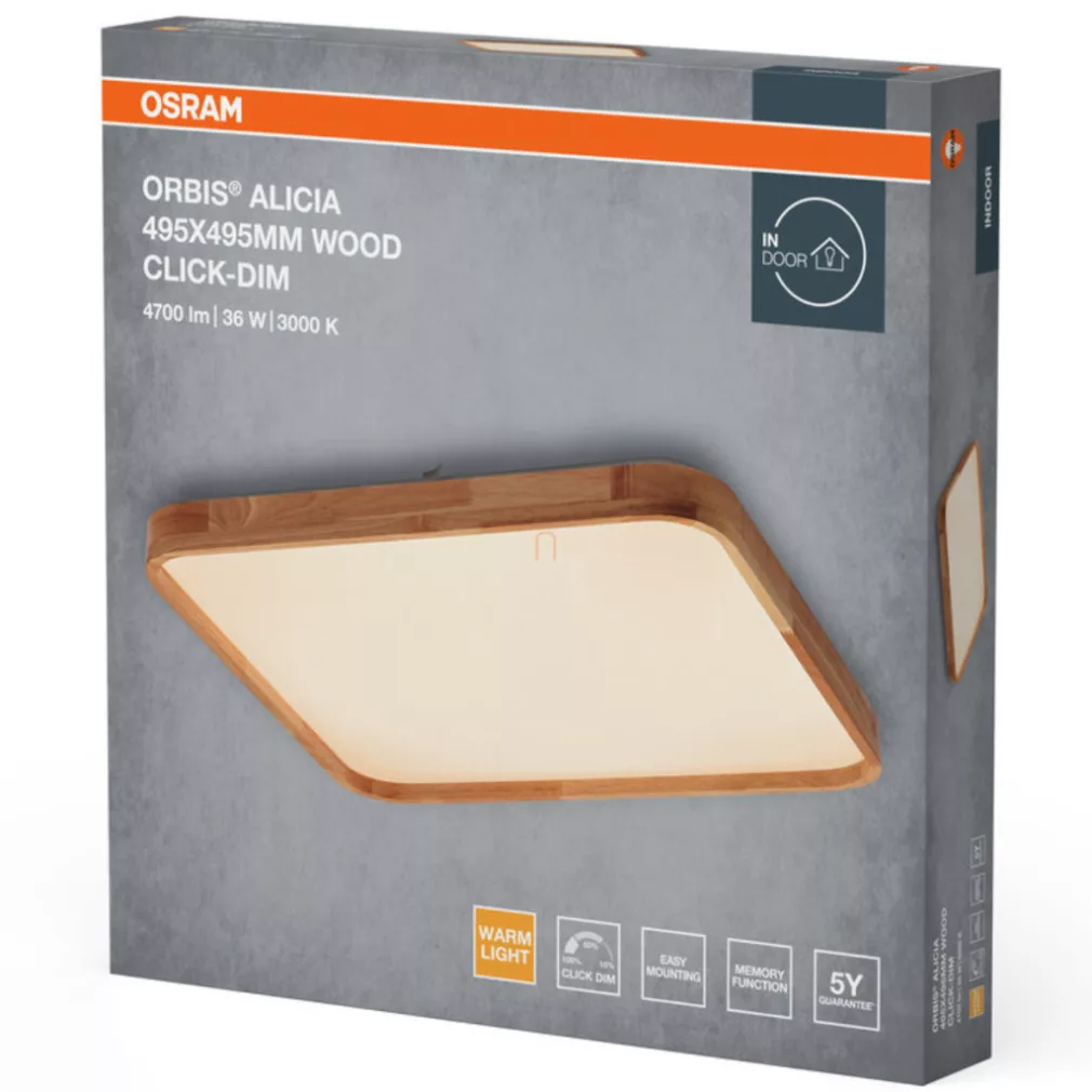 Lampa LED de tavan Osram Orbis Alicia cu ramă pătrată cu efect de lemn, 49,5x49,5 cm