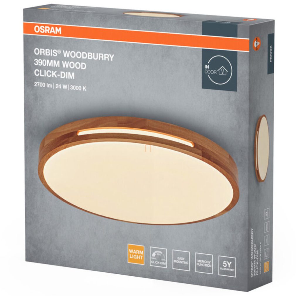 Lampa LED de tavan Osram Orbis Alison cu ramă cu efect de lemn, 39 cm