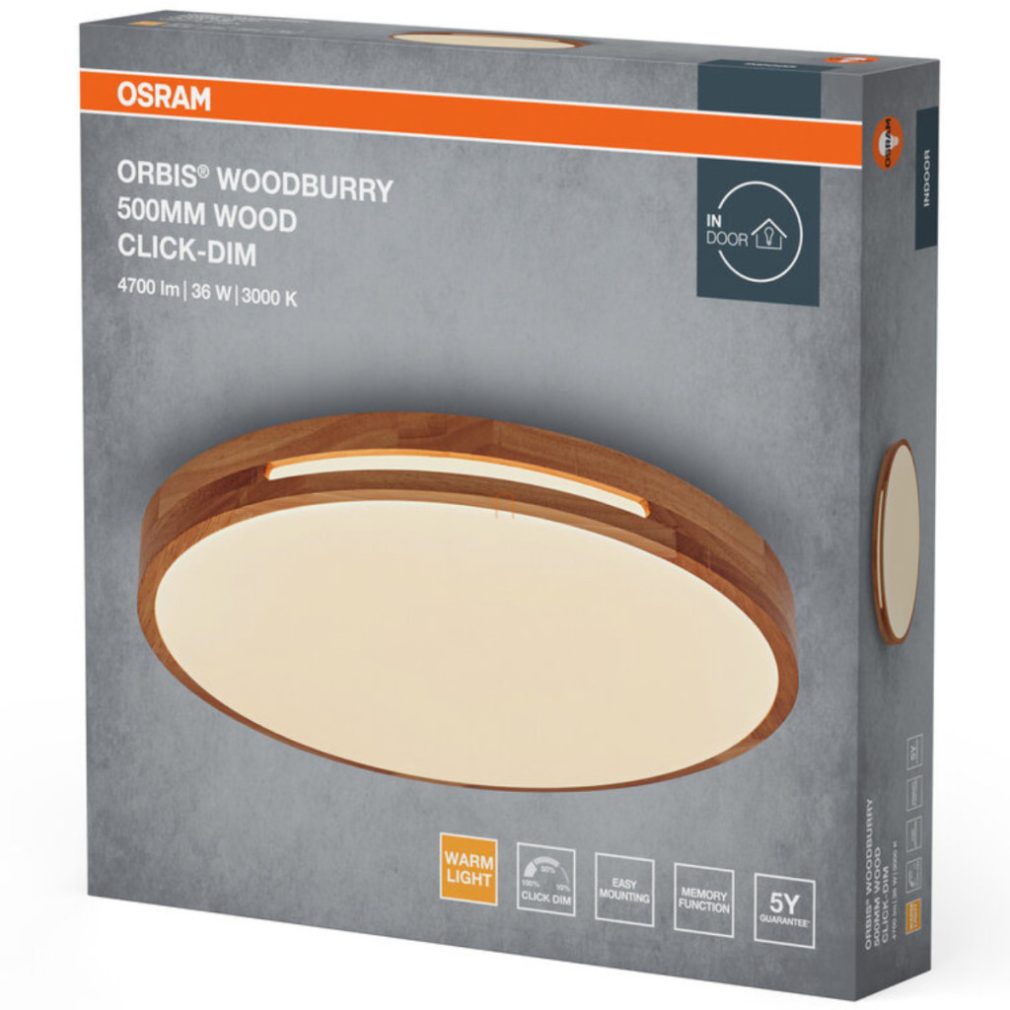 Lampă LED de tavan Osram Orbis Alison cu ramă cu efect de lemn, 50 cm