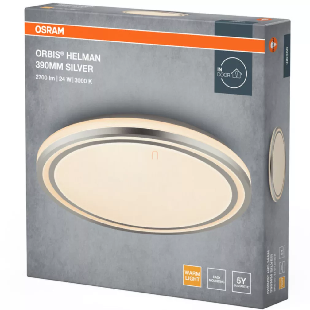 Lampa LED de tavan Osram Orbis Berlin, cadru dublu inel argintiu, 39 cm