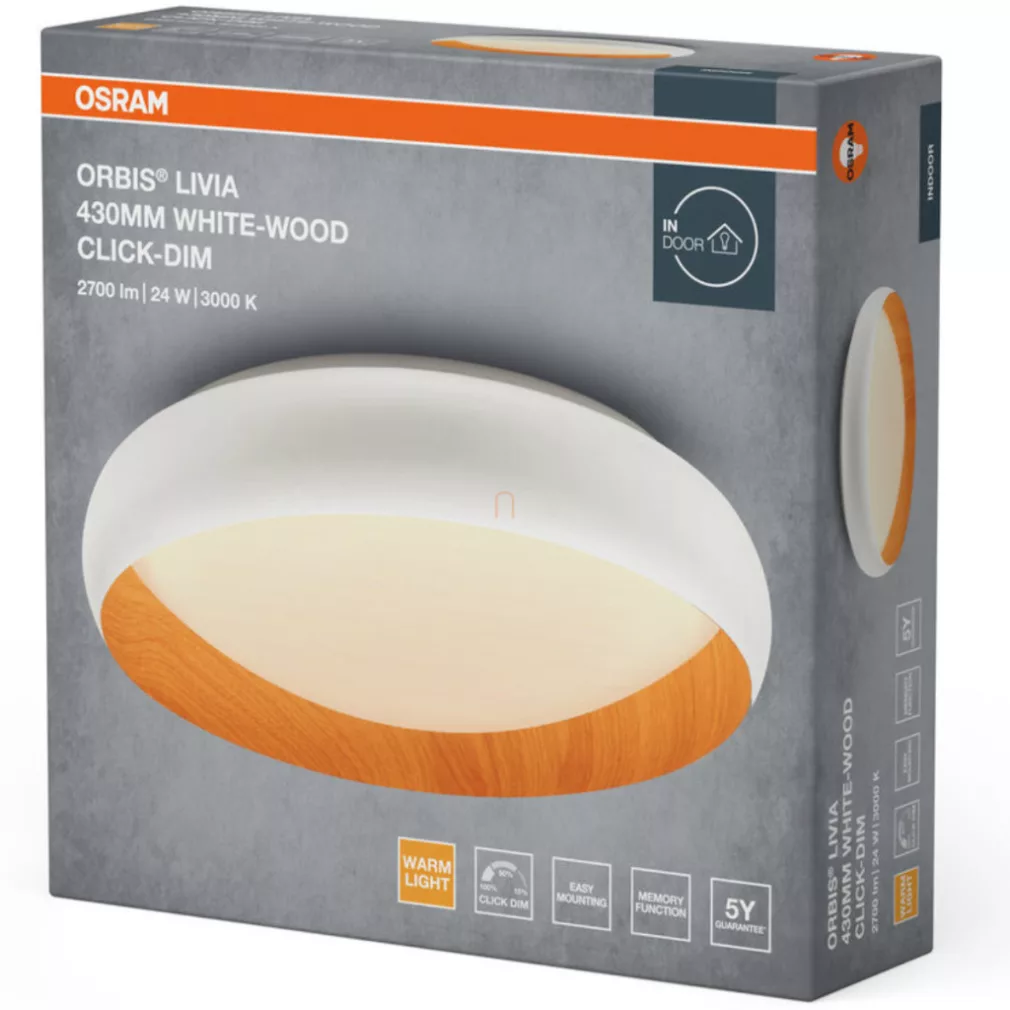 Lampa LED de tavan Osram Orbis Livia, efect lemn - culoare albă, 43 cm