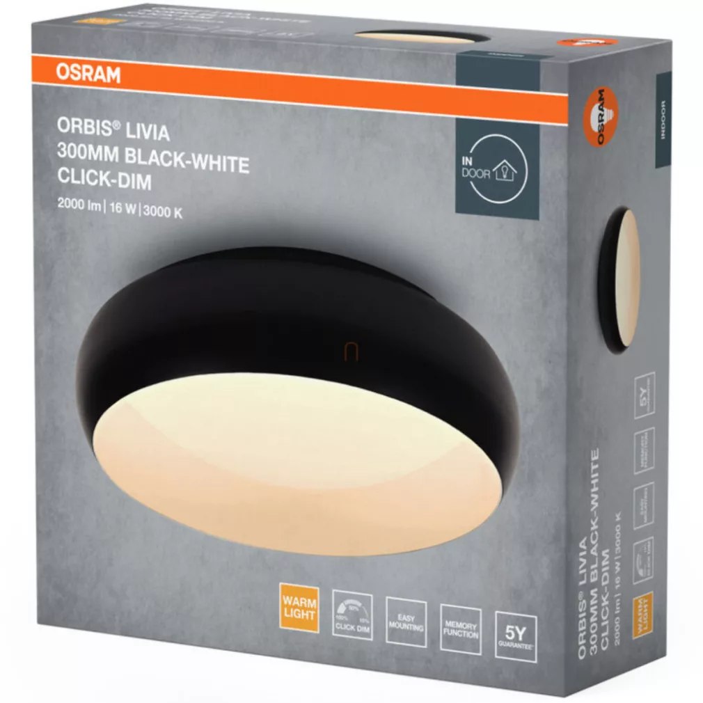 Lampa LED de tavan Osram Orbis Livia, negru, 30 cm