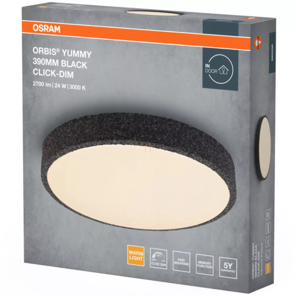 Lampă LED de tavan Osram Orbis Yummy cu întrerupător de perete, negru, 39 cm