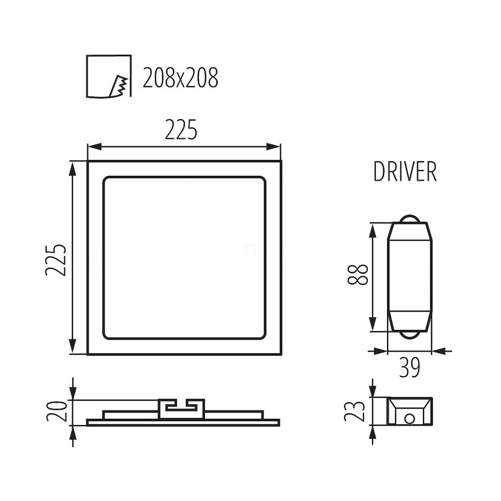 Lampă LED încastrată 18W 1260lm 4000K, pătrată, albă - Kanlux 28943