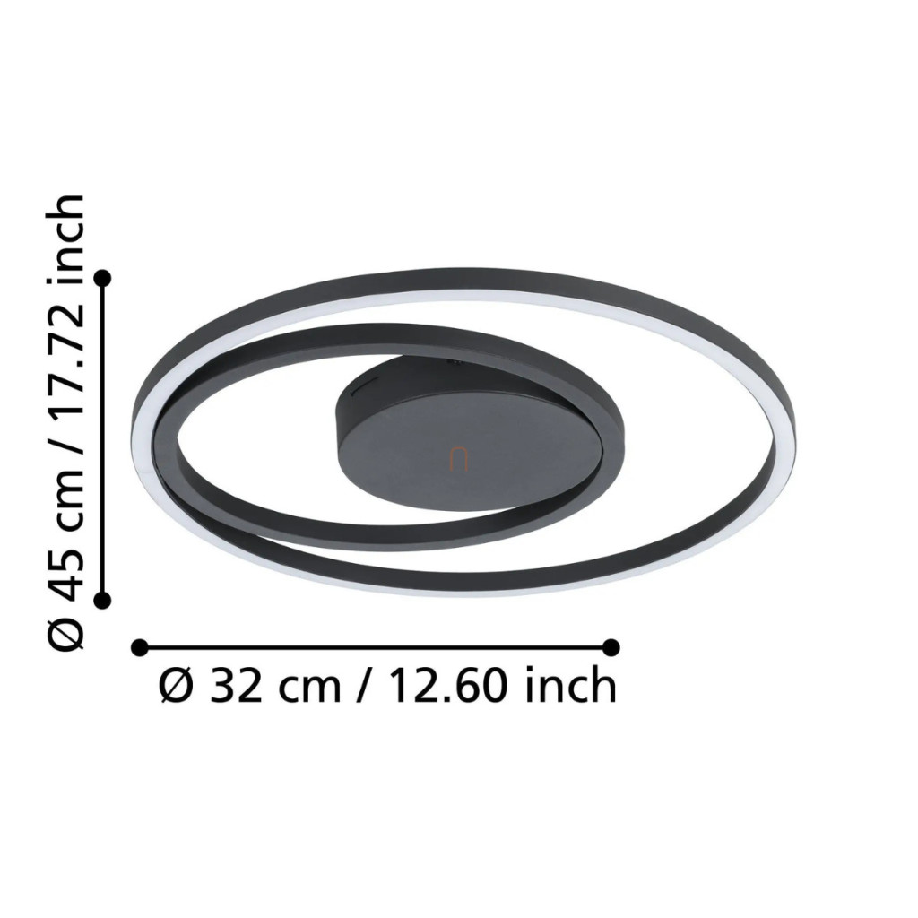 Lampa inteligentă LED de tavan Calagrano-Z-RGBW Eglo 900728, cu designul său cu inel dublu, conferă un aspect modern oricărui spațiu interior. Corpul de iluminat funcționează cu un modul LED integrat de 21,5 wați, care oferă un flux luminos de 2700 lumeni. Temperatura culorii luminii poate fi reglată într-un interval larg între 2700 și 6500 Kelvin, precum și în modul de culoare RGB, permițându-vă să personalizați iluminatul. Luminozitatea poate fi controlată prin intermediul unei aplicații sau al unei telecomenzi opționale și, datorită conexiunii Bluetooth, poate fi controlată rapid și ușor. Lampa este fabricată din aluminiu, oțel și plastic și este disponibilă în culorile alb și negru. Are un diametru de 450 mm, o înălțime de 35 mm și protecție IP20, fiind potrivită în principal pentru utilizare în interior. Modulul LED inclus în produs face parte din pachet.