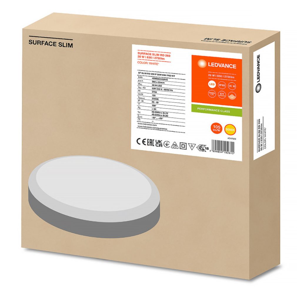 Lampă LED Ledvance Professional Surface Slim IK10 RD 260, 2730 lm, 3000 K, 26 W, RA> 80, 120°, IP65