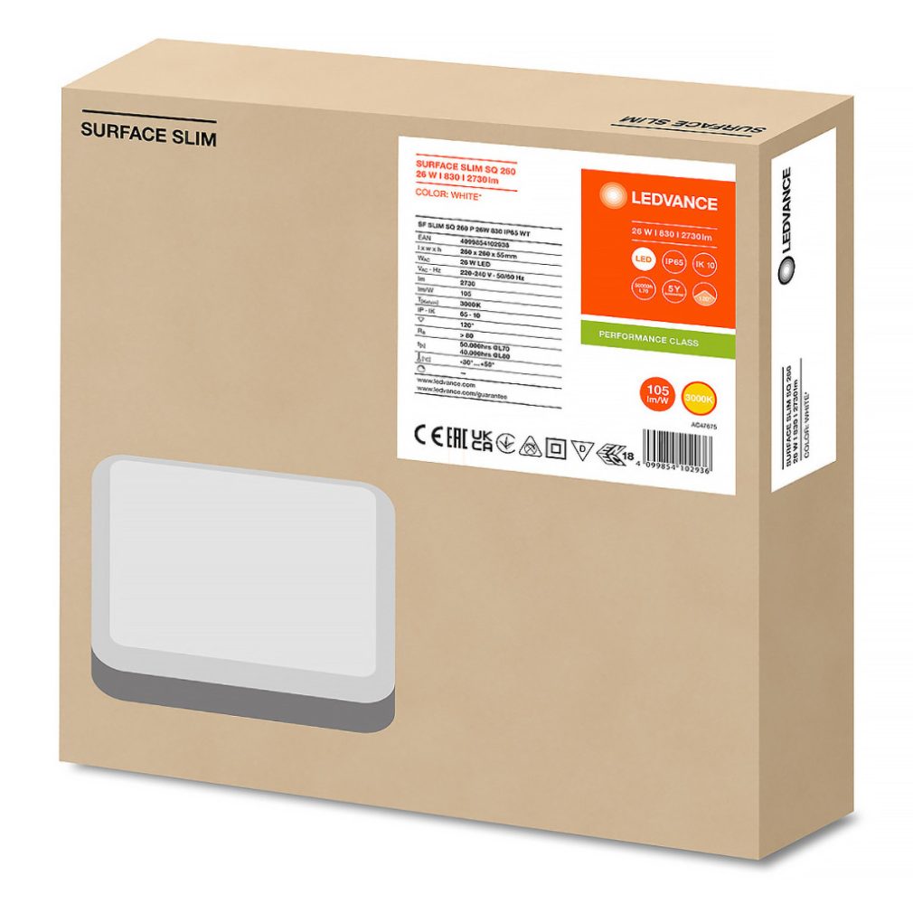 Lampă LED Ledvance Professional Surface Slim IK10 SQ 260, 2730 lm, 3000 K, 26 W, RA> 80, 120°, IP65 260 mm