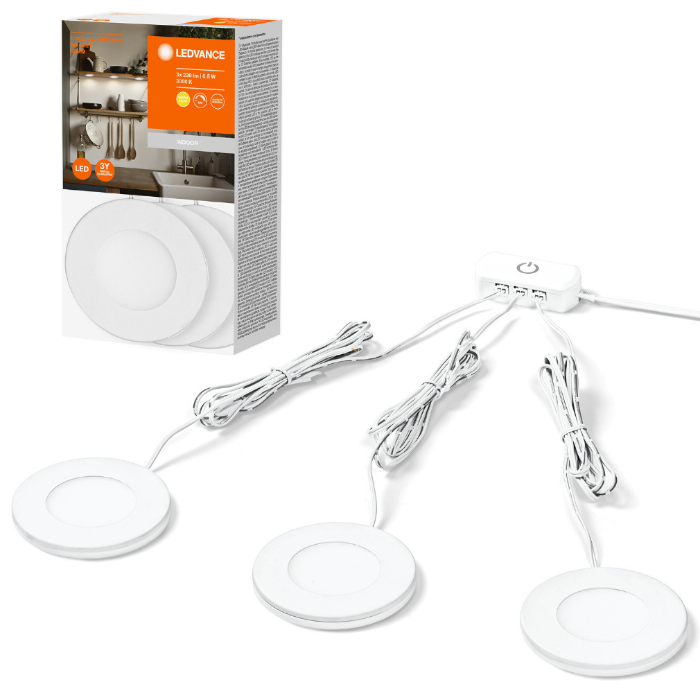 Lampă LED magnetică pentru mobilă Ledvance, 8,5 W, alb cald, 3 bucăți (cu unitate de alimentare)