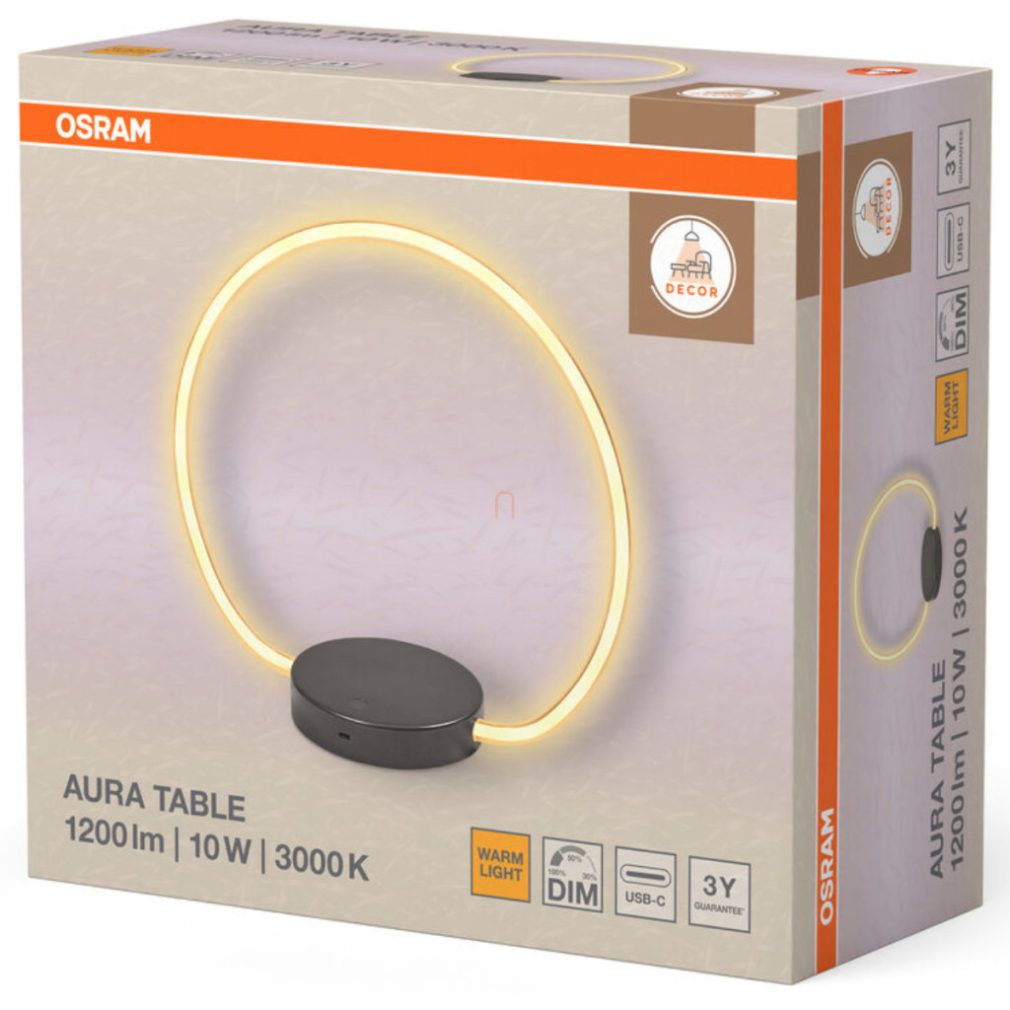 Lampă LED minimalistă pentru masă, 34,9 cm, 34,9 cm - Osram Decor Aura, 3000 K, 1000 lm, 10 W, cu cablu de 1,4 metri, 220-240 V