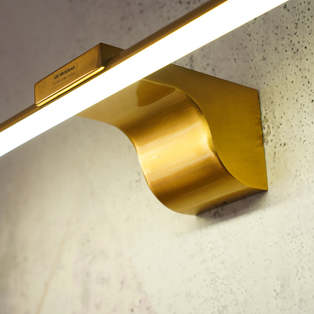 Lampa LED de perete Pepe Globo 41925M oferă o soluție modernă de iluminat cu lumina sa albă rece (4000 K), furnizând un flux luminos de 630 lumeni cu un modul LED de 10 W. Corpul de iluminat are protecție IP44, fiind potrivit pentru utilizarea în băi sau alte încăperi umede. Designul mat, de culoare aurie, realizat din plastic și metal, conferă produsului un aspect elegant. Lampa are o lățime de 608 mm și o înălțime de 80 mm, iar dimensiunile sale compacte o fac ușor de integrat în majoritatea interioarelor. Modulul LED încorporat asigură o durată lungă de viață și un consum redus de energie, fără a fi necesară înlocuirea sursei de lumină. Produsul cântărește 0,54 kg și este fabricat de Globo.