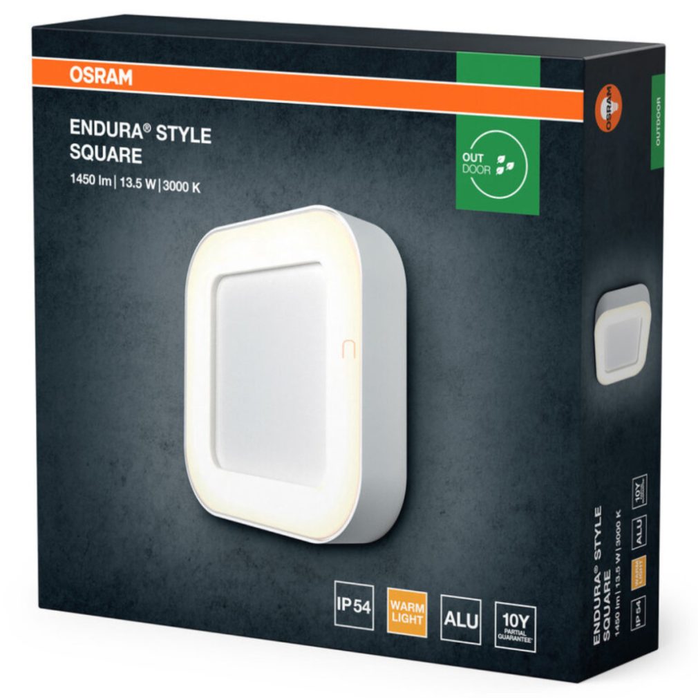 Lampa LED Osram Endura Style Square 13W albă 3000K IP44 pentru montare pe perete exterior