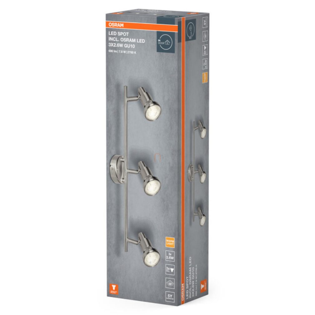 Lampa LED Osram GU10 cu sursă de lumină, trei brațe