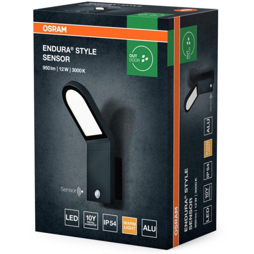 Lampă LED Osram pentru exterior, cu senzor de mișcare, alb cald, 12 W, gri (Endura Style Wall)