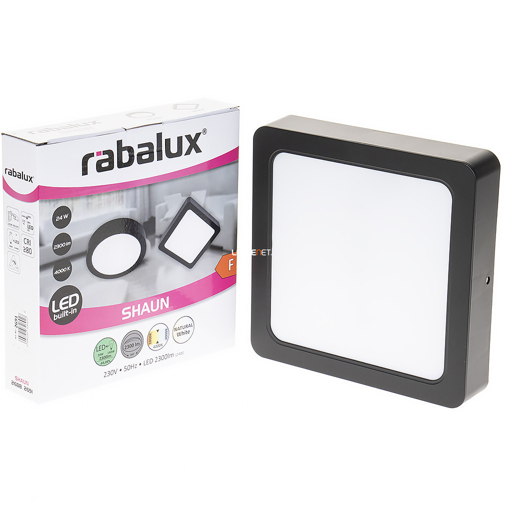 Lampa LED de tavan Shaun Rábalux 2691 este o soluție de iluminat funcțională care oferă o sursă de lumină compactă, dar eficientă, cu dimensiuni de 220x220 mm și înălțime de 45 mm. Corpului de iluminat are un modul LED încorporat de 24 W care emite 2300 lumeni de lumină cu o temperatură de culoare albă rece de 4000 K. Produsul are un grad de protecție IP20, fiind potrivit pentru utilizare în interior. Combinația de culori alb-negru și construcția din plastic a corpului de iluminat conferă încăperii un aspect modern și curat. Durata medie de viață este de 25.000 de ore, asigurând o funcționare fiabilă pe termen lung. Sursa de lumină LED face parte din corp, astfel încât nu este necesară achiziționarea unui bec separat. Produsul cântărește 0,5 kg și este fabricat de Rábalux.