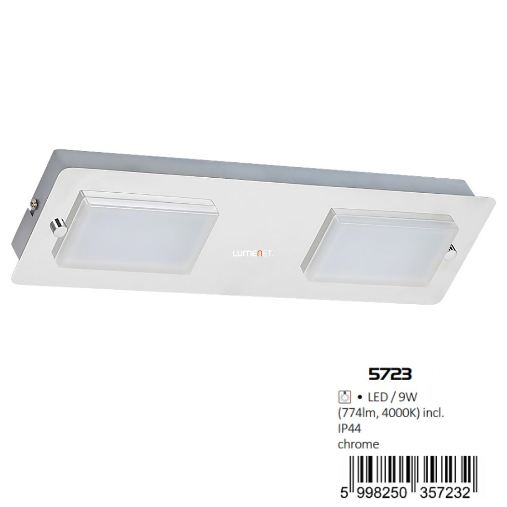 Lampa LED de perete pentru baie Ruben Rábalux 5723 oferă o iluminare eficientă, având un stil modern și un modul LED de 9 W. Lampa emite un flux luminos de 774 lumeni cu o culoare albă rece (4000 K), ideală pentru a oferi o iluminare clară și puternică. Produsul are protecție IP44, fiind potrivit pentru utilizarea în medii umede, cum ar fi băile. Lampa are o lățime de 378 mm, o lungime de 108 mm și o înălțime de 41 mm, fiind fabricată din metal argintiu și plastic, ceea ce asigură durabilitate și un aspect estetic. Durata medie de viață este de 20.000 de ore, lampa nu este reglabilă, iar sursa de lumină este încorporată sub forma unui modul LED. Produsul cântărește 1,25 kg, iar dimensiunile ambalajului său sunt: 13 cm lățime, 5 cm lungime și 39 cm înălțime. Ruben Rábalux 5723 este ideal pentru nevoile de iluminat ale băilor moderne.