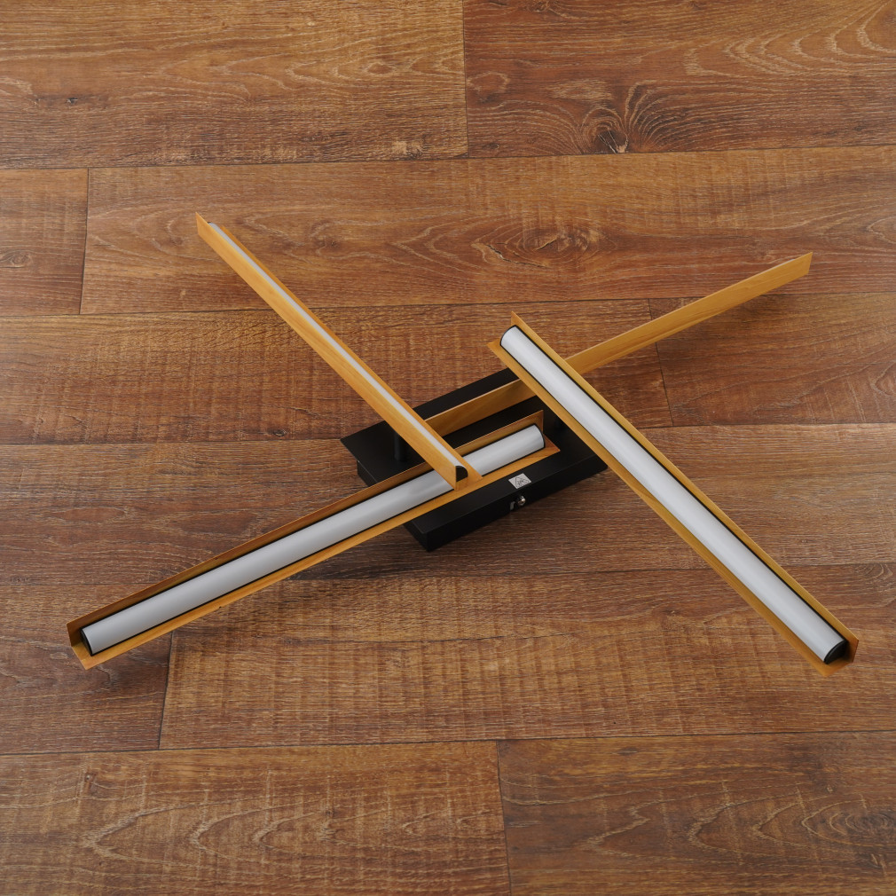 Această lampă LED de tavan în stil modern, cu efect de lemn, cu lumina sa albă caldă și aspectul elegant, este alegerea perfectă pentru orice locuință. Lampa LED de tavan cu efect de lemn combină designul natural și contemporan într-un stil modern, luminând instantaneu orice încăpere. Lampa este fabricată din metal și materiale plastice, asigurând durabilitate și întreținere ușoară. Lumina albă caldă furnizată de modulul LED încorporat creează o atmosferă plăcută și prietenoasă, ideală pentru iluminarea sufrageriei sau dormitorului. Lampa are o putere de 20 W și oferă un flux luminos de 1200 lumeni, suficient pentru activitățile zilnice. Lampa are o lungime de 750 mm, un diametru de 620 mm și o înălțime de 95 mm, ceea ce o face ușor de montat în majoritatea spațiilor de tavan. Lampa are o temperatură de culoare de 3000 K, care se încadrează în gama de alb cald, creând o atmosferă plăcută și confortabilă. Lampa prezintă o combinație de culori negru mat, alb și lemn, conferindu-i un aspect modern și natural. Are o durată de viață medie de 30.000 de ore, ceea ce o face o alegere fiabilă pe termen lung. Lampa are un soclu pentru modul LED, asigurând o instalare ușoară și rapidă.