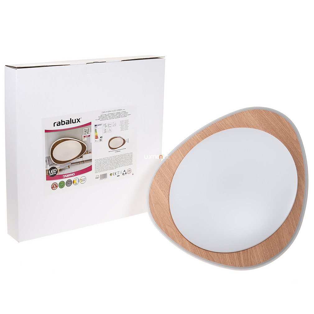 Lampa LED de tavan Tamino Rábalux 2427 cu efect de lemn este o soluție modernă de iluminat pentru locuințe, care funcționează cu un modul LED încorporat de 24 W. Corpului de iluminat are un flux luminos de 1200 lumeni și o temperatură de culoare alb rece (4000 K), ideală pentru a crea condiții de iluminare clare și naturale. Produsul nu este reglabil și are un grad de protecție IP20, fiind potrivit pentru utilizare în interior. Corp de iluminat este fabricat din metal și plastic, în culori de lemn și alb, ceea ce îi conferă un aspect elegant. Are un diametru de 450 mm, o înălțime de 65 mm și o durată medie de viață de 50.000 de ore. Sursa de lumină este asigurată de un modul LED încorporat, care garantează o funcționare eficientă din punct de vedere energetic pe termen lung.
