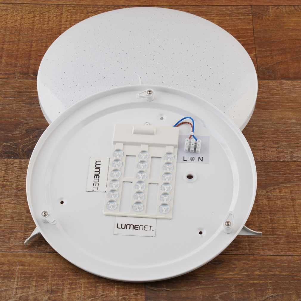 Lampa LED de tavan Frania Eglo 97878 cu efect strălucitor, cu aspect modern și modul LED integrat de 17,3 W, oferă un flux luminos de 1600 lumeni, emanând o lumină albă caldă cu o temperatură de culoare de 3000 Kelvin. Lampa are o formă rotundă, culoare albă și suprafață cu efect glitter și este fabricată din oțel și plastic. Produsul are un diametru de 330 mm, o înălțime de 70 mm și un grad de protecție IP20, fiind potrivit în principal pentru utilizare în interior. Modulul LED încorporat asigură un consum energetic eficient și o durată lungă de viață. Lampa este proiectată pentru a îndeplini cerințele moderne de iluminat rezidențial și este fabricată de EGLO.