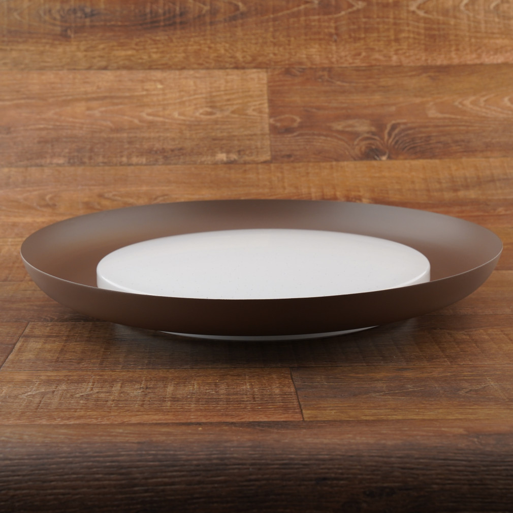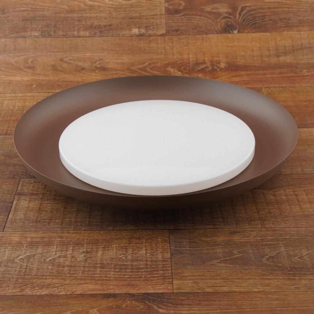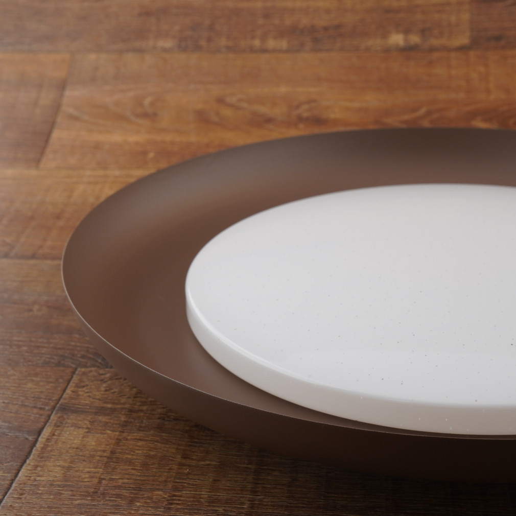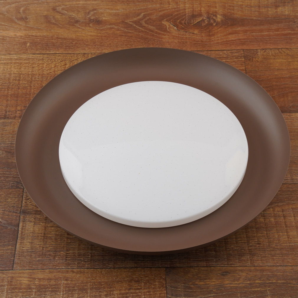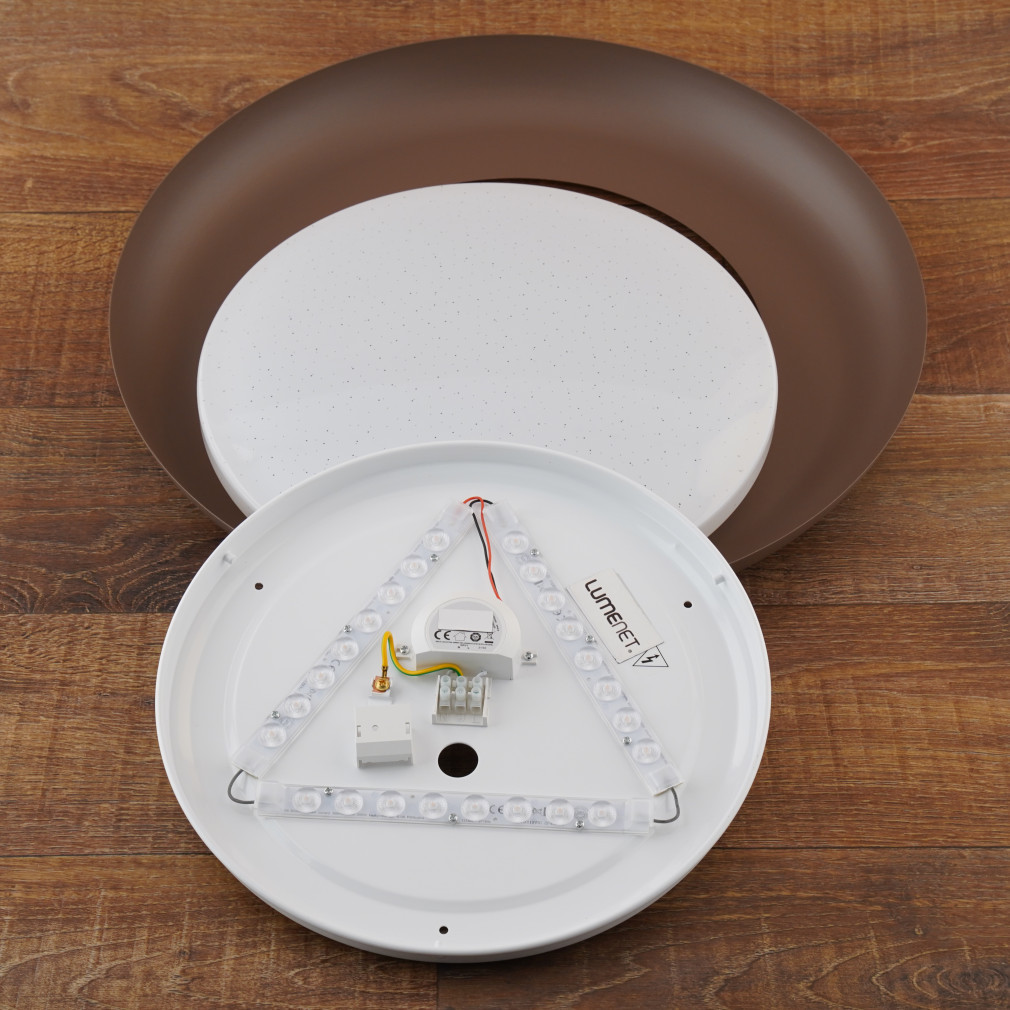 Lampa LED de tavan cu efect strălucitor va încânta casa dvs. cu lumina sa albă caldă și culoarea elegantă alb-cafea. Cu aspectul său unic și lumina albă caldă, lampa LED de tavan cu efect strălucitor este alegerea perfectă pentru orice casă. Lampa are un modul LED de 17,1 W care oferă o putere luminoasă de 2010 lumeni, fiind ideală pentru iluminarea sufrageriei sau a dormitorului. Lampa are un diametru de 465 mm și o înălțime de 65 mm, conferindu-i un aspect elegant și modern. Combinația de oțel și materiale plastice asigură durabilitate și curățare ușoară. Lampa are culoarea alb-cafea, care se potrivește armonios în diverse interioare. Lampa nu este reglabilă, dar lumina albă caldă cu o temperatură de culoare de 3000 K creează o atmosferă plăcută și prietenoasă. Lampa este dotată cu un modul LED încorporat, astfel încât nu este necesară achiziționarea unei surse de lumină separate. Lampa este ușor de instalat, iar efectul strălucitor creează un joc special de lumină care umple orice cameră cu viață. Această lampă nu este doar funcțională, ci servește și ca element decorativ care va înveseli orice cameră din casa dvs.