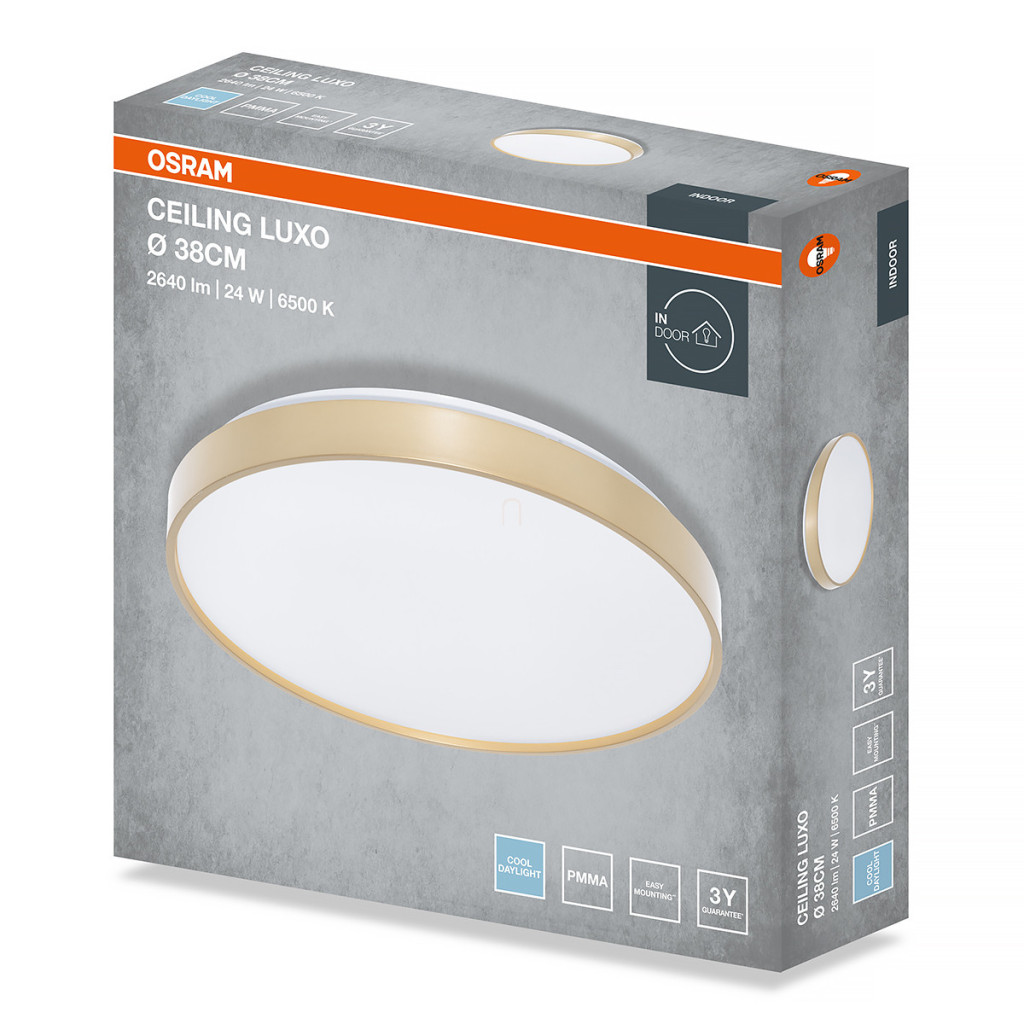 Lampa LED pentru tavan Osram Ceiling Luxo, 38 cm, 24 W, 6500 K, 1320 lm, culoare aurie