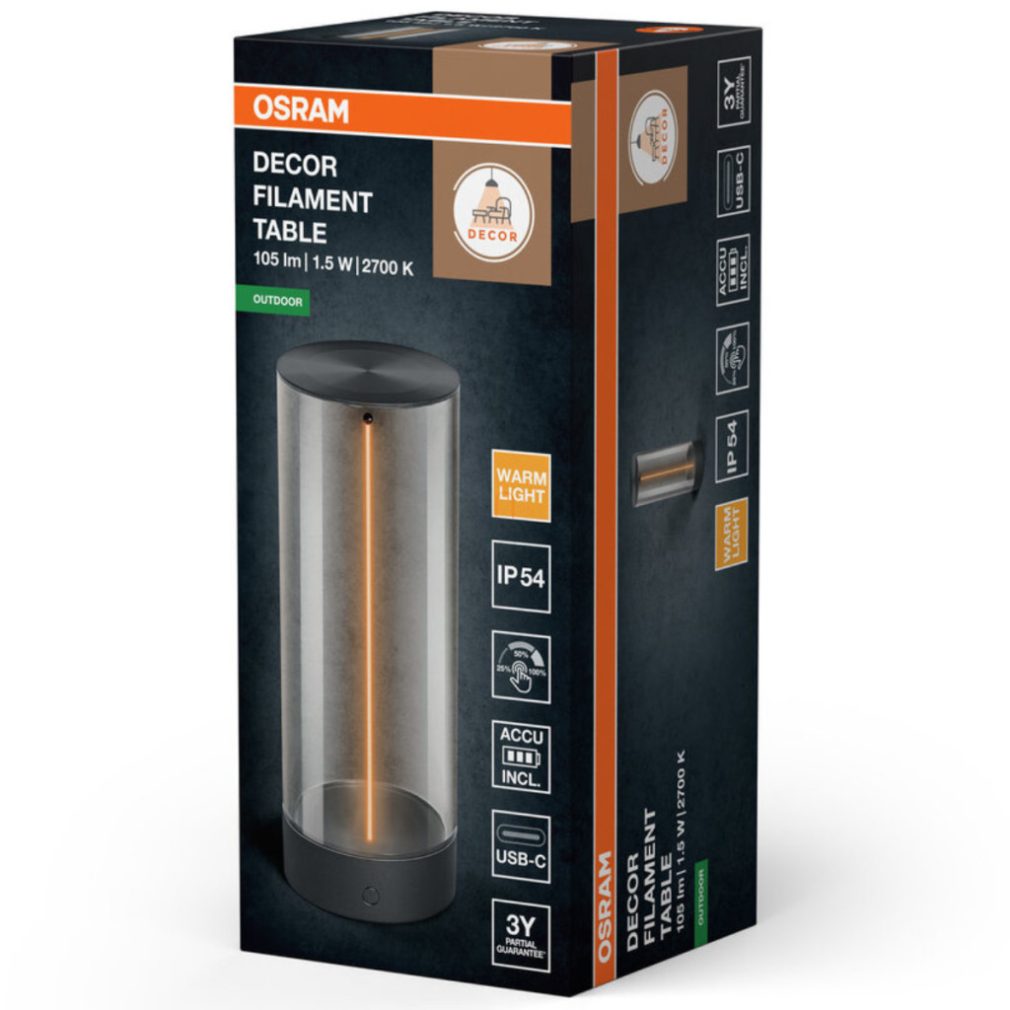 Lampă LED portabilă pentru birou cu filament magnetic flotant, încărcător USB-C, 24,2 cm - Osram Endura Style Dec Fil, 2700 K, 100 lm, luminozitate reglabilă, 3 trepte de reglare a intensității luminoase, 1,2 W, cablu de 1 metru, 5 V