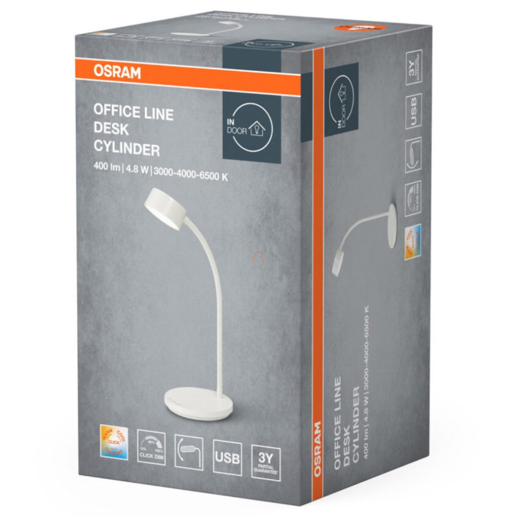 Lampă LED reglabilă pentru birou, 31 cm - Osram Office Line Desk Cylinder, 3000/4000/6500 K, 328 lm, temperatură de culoare reglabilă, 4,8 W, cu cablu de 1 metru, 220-240 V