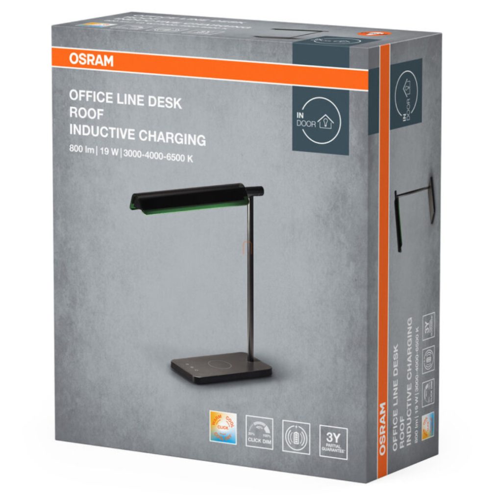 Lampă LED reglabilă pentru birou, 32,5 cm - Osram Office Line Desk Roof, 3000/4000/6500 K, 520 lm, luminozitate și temperatură de culoare reglabile, 19 W, cablu de 1,8 metri, 220-240 V