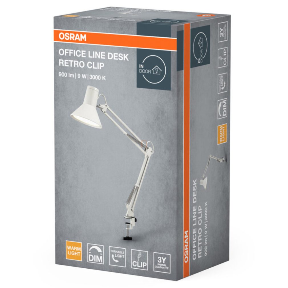 Lampă LED reglabilă pentru birou, montabilă pe masă, 67 cm - Osram Office Line Desk Retro Clip, 3000 K, 617 lm, luminozitate reglabilă, 9 W, cablu de 1,6 metri, 220-240 V