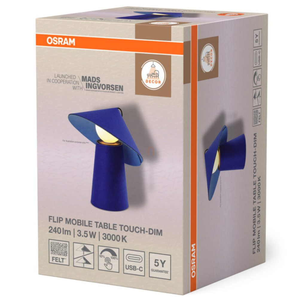 Lampă LED reglabilă pentru masă, albastră, 25,5 cm - Osram Decor Flip Mobile, 3000 K, 70 lm, luminozitate reglabilă, 3,5 W, 5 V