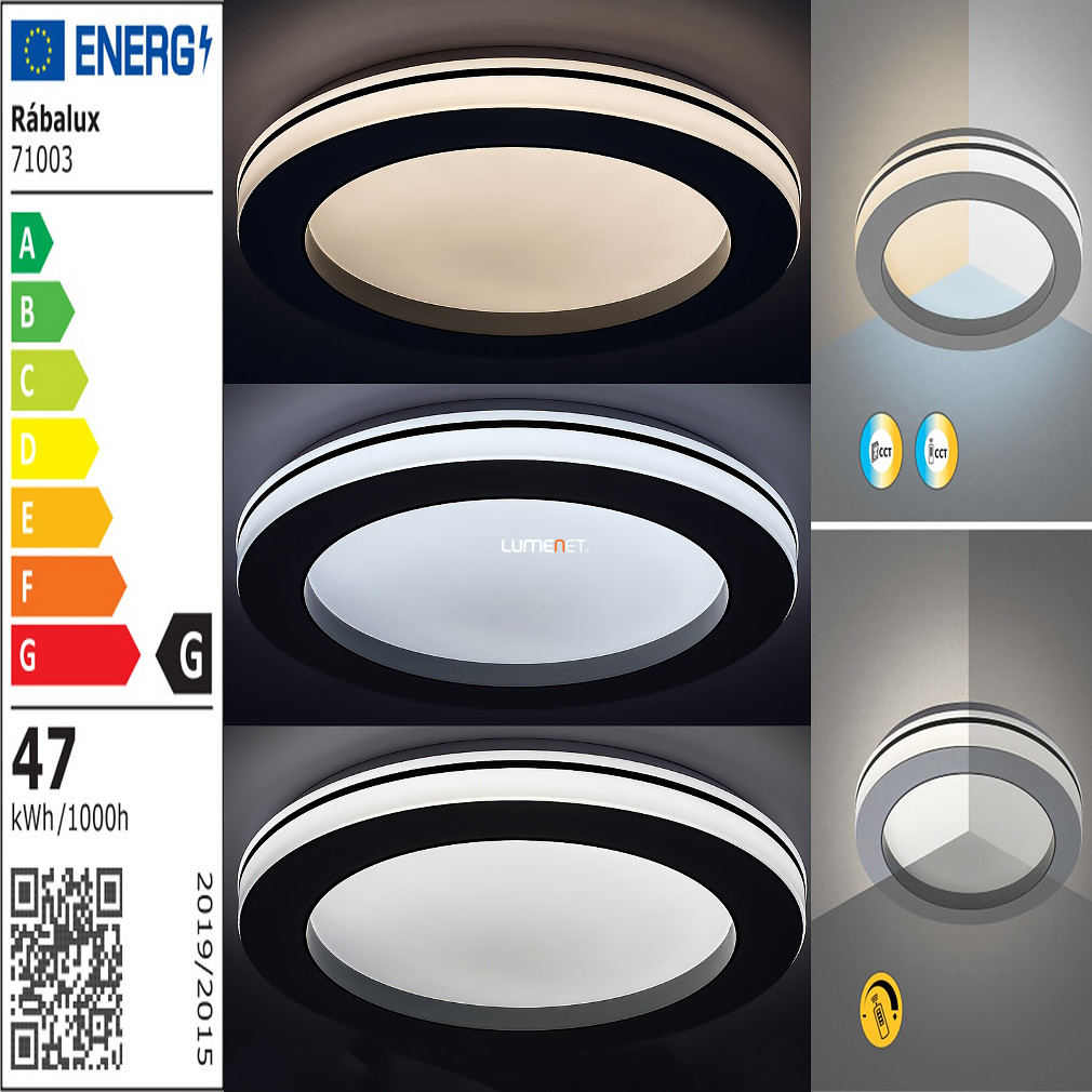 Lampa LED cu intensitate reglabilă Cooperius Rábalux 71003 oferă o soluție modernă de iluminat pentru locuințe și birouri. Corpul de iluminat are un modul LED încorporat de 47 W care oferă un flux luminos de 3800 lumeni. Temperatura culorii luminii poate fi reglată între 3000 și 6500 Kelvin, permițând atât lumină albă caldă, cât și rece. Lampa este controlată de telecomanda inclusă, care vă permite să modificați luminozitatea, să utilizați funcția de lumină de veghe, memoria și temporizatorul. Produsul este fabricat din metal și materiale plastice, în culoare albă, cu un grad de protecție IP20. Dispozitivul are un diametru de 480 mm, o înălțime de 70 mm și o durată medie de viață de 25.000 de ore. Modulul LED este inclus în pachet, astfel încât nu este necesar să achiziționați o sursă de lumină separată.