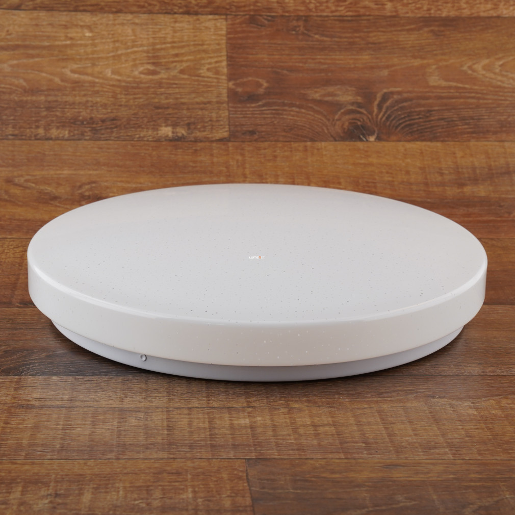 Lampa LED albă pentru tavan Totari Eglo 900001 cu efect strălucitor are un modul LED de 4x4,8 W, care oferă un flux luminos total de 2160 lumeni. Temperatura culorii lămpii poate fi reglată între 2700 și 6500 Kelvin, oferind atât lumină albă rece, cât și caldă, pentru a se potrivi diferitelor nevoi de iluminat. Luminozitatea poate fi controlată prin intermediul unei aplicații sau al unei telecomenzi, permițând setări personalizate. Corpul lămpii este fabricat din oțel și plastic și are protecție IP20, fiind potrivit pentru utilizare în interior. Are un diametru de 380 mm și o înălțime de 70 mm. Modulul LED încorporat este inclus în pachet, iar produsul cântărește 1,65 kg. Finisajul cu efect strălucitor conferă lămpii, fabricată de EGLO, un aspect estetic.