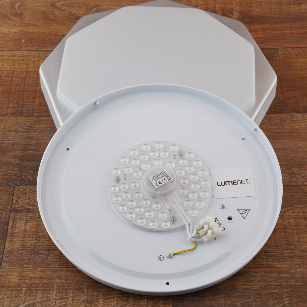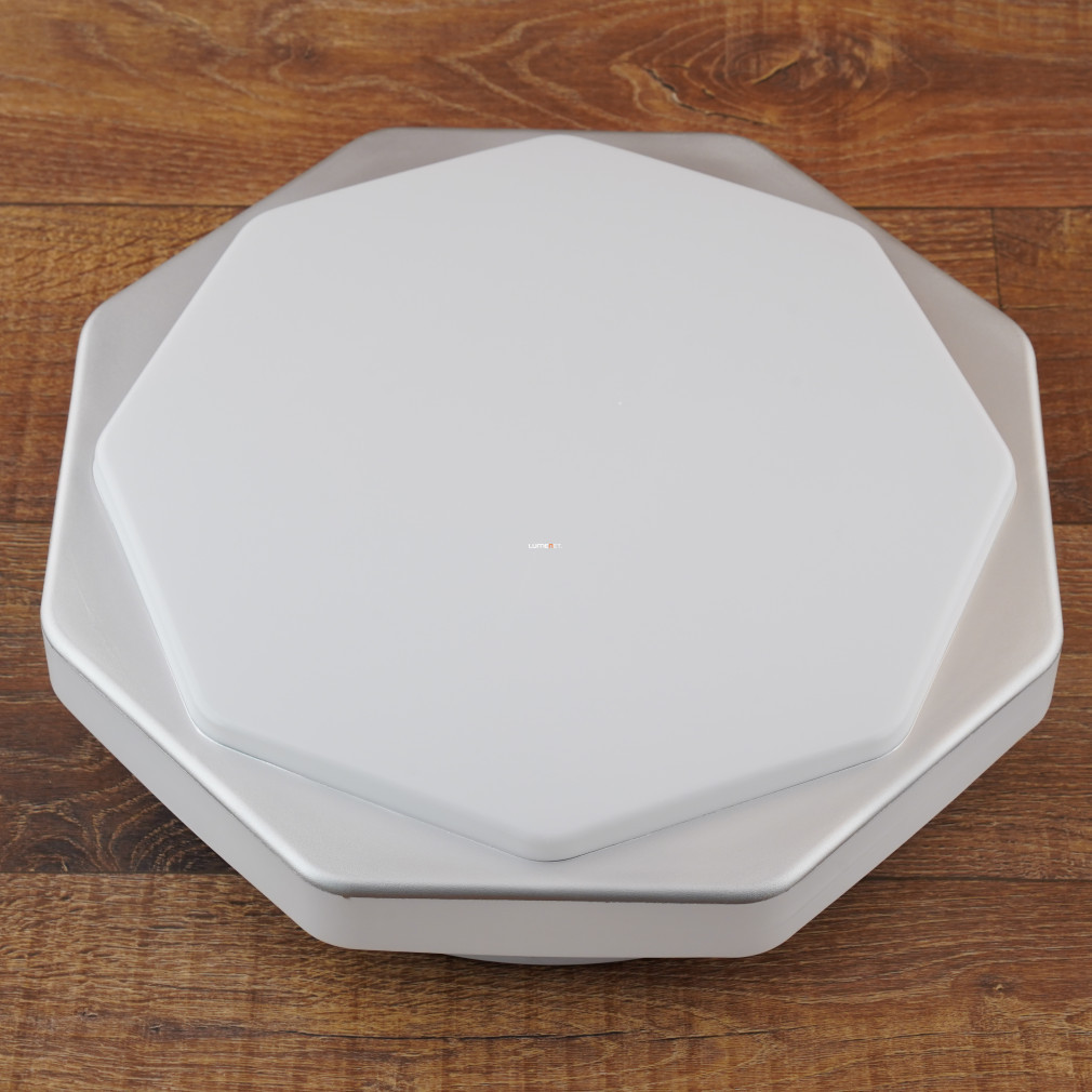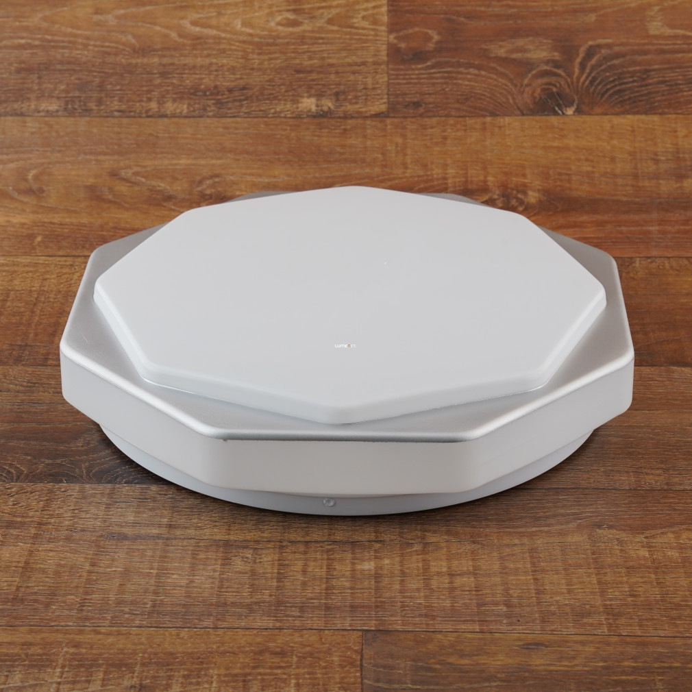 Lampa LED de tavan Dettora Rábalux 71046 are un abajur octogonal modern și o combinație de culori gri-alb care se potrivește perfect în orice spațiu de locuit. Modulul LED încorporat de 18 wați oferă un flux luminos de 1150 lumeni, cu o temperatură de culoare care poate fi reglată între 3000, 4000 și 6000 Kelvin, permițându-vă să setați lumina albă rece sau albă caldă. Luminozitatea și temperatura culorii pot fi reglate cu ușurință folosind telecomanda sau comutatorul de perete inclus. Lampa dispune, de asemenea, de o funcție de memorie, temporizator și opțiune de lumină de veghe, care îmbunătățesc și mai mult experiența utilizatorului. Corp de iluminat cu clasă de protecție IP20 este fabricat din metal și materiale plastice și are o durată de viață medie de 10.000 de ore. Dimensiunile ambalajului produsului sunt de 38x38x8 cm, iar greutatea acestuia este de 0,77 kg. Lampa poate fi utilizată numai cu un modul LED, care este inclus în pachet.