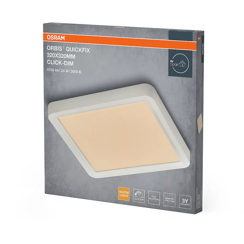 Lampă LED reglabilă pentru tavan Osram Orbis Quickfix, pătrată, 24 W, 2500 lm, 3000 K, luminozitate reglabilă în 3 trepte