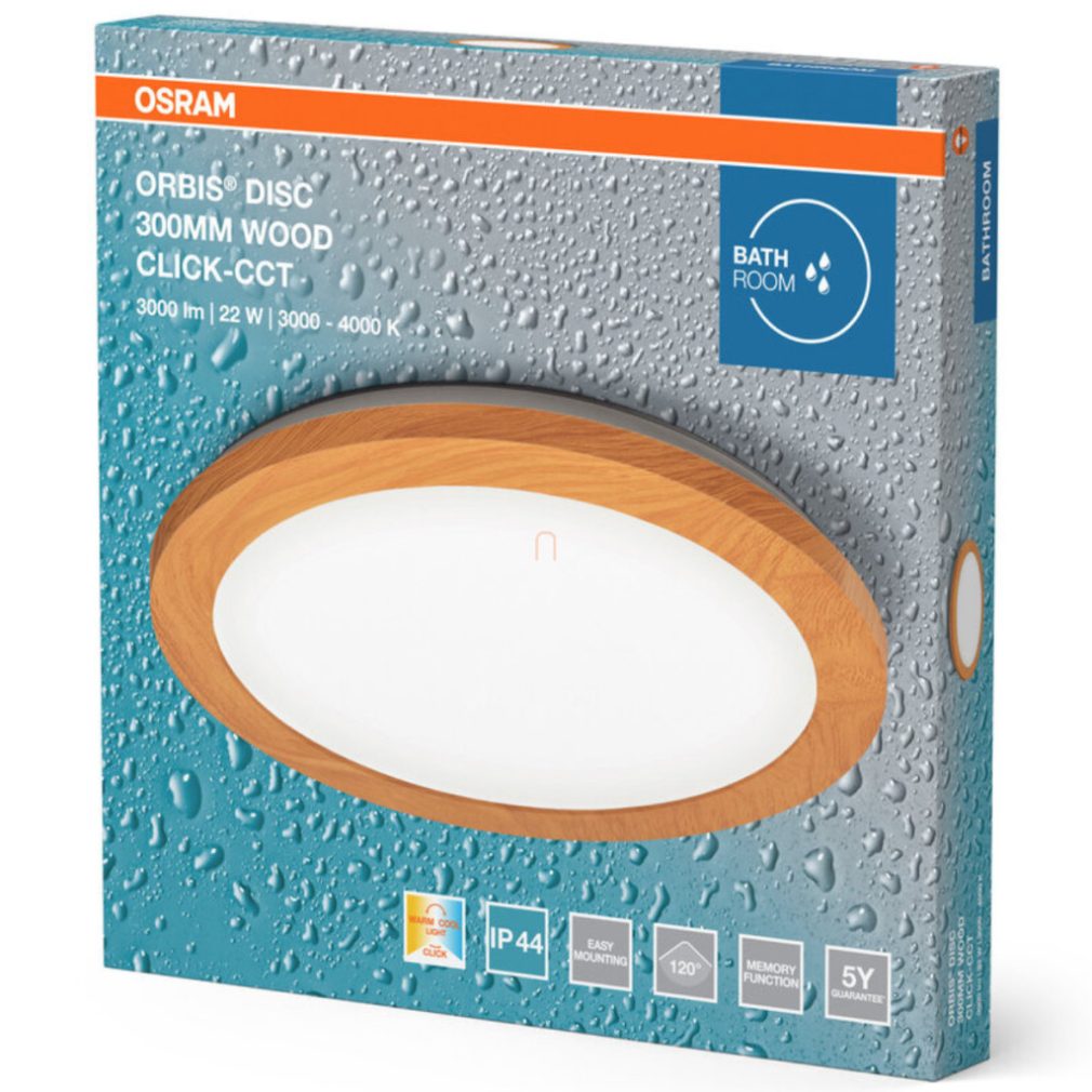 Lampă LED reglabilă pentru tavanul băii Osram Orbis Disc, efect lemn, 30 cm