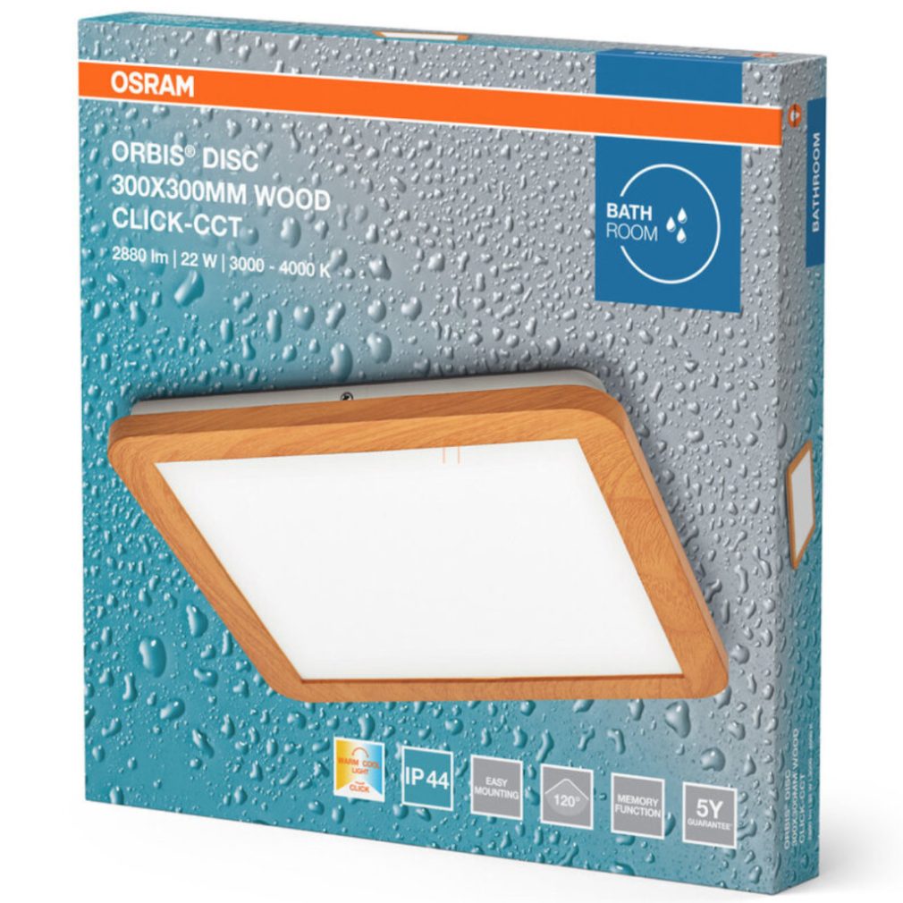 Lampă LED reglabilă pentru tavanul băii Osram Orbis Disc, efect lemn, 30x30 cm