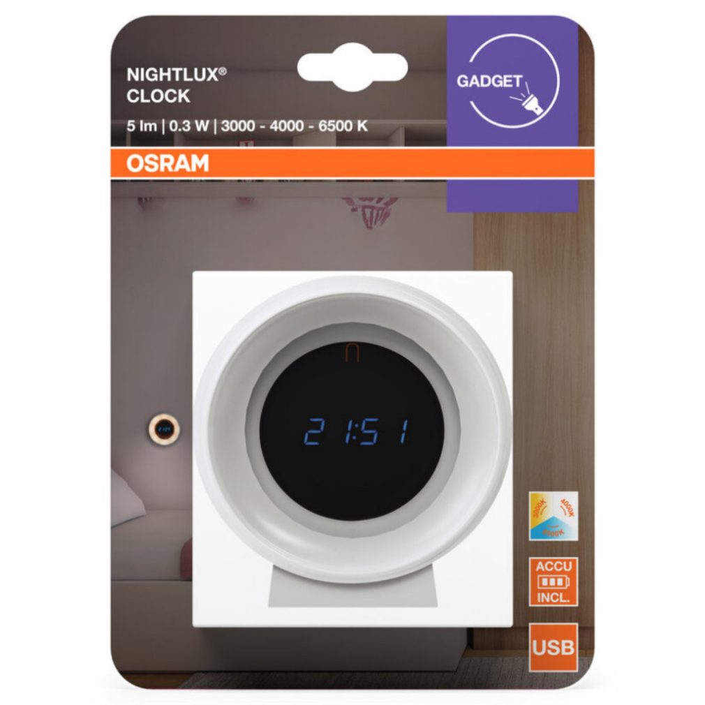 Lampă LED reîncărcabilă Osram, reglabilă, cu funcție de ceas (NightLux)
