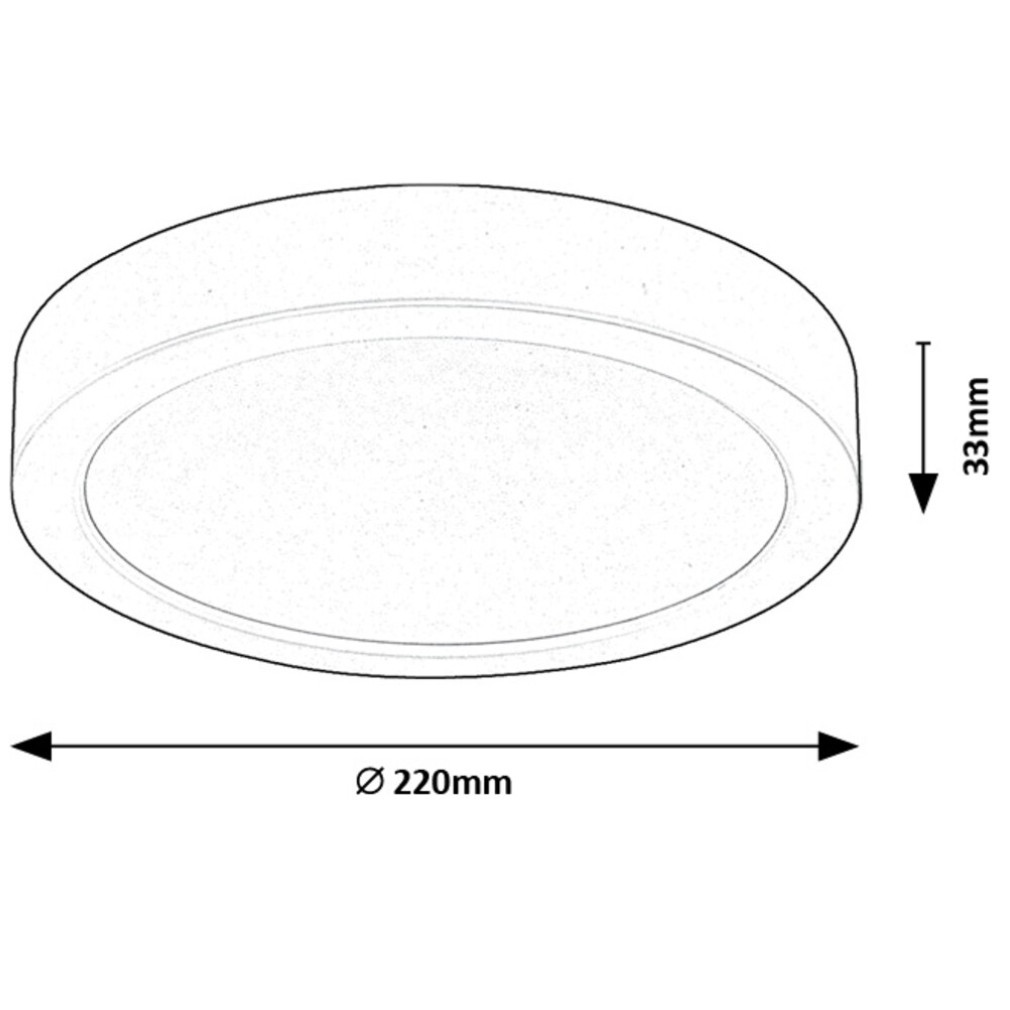Lampa LED rotundă pentru tavan Shaun 2 Rábalux 071194 are un diametru de 22 cm și un capac modern din plastic alb. Modulul LED încorporat de 24 W oferă o lumină albă rece, cu o temperatură de culoare de 4000 K și un flux luminos de 2600 lumeni. Gradul de protecție IP20 o face potrivită pentru utilizarea în interior, în timp ce tensiunea nominală de 230 V și clasa energetică F asigură o funcționare eficientă. Lampa are o durată de viață medie de 20.000 de ore, asigurând o iluminare adecvată pe termen lung. Datorită dimensiunilor sale compacte (înălțime: 33 mm), se potrivește bine chiar și în încăperi cu tavane mai joase. Ambalajul produsului măsoară 25x25x5 cm și cântărește 0,25 kg.