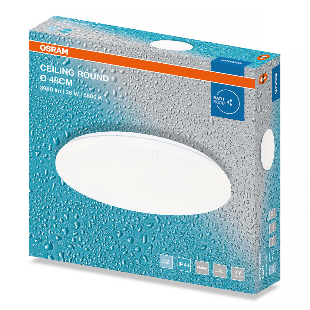 Lampă LED rotundă pentru tavan de baie Osram, 48 cm, 36 W, 6500 K, 2880 lm, alb mat