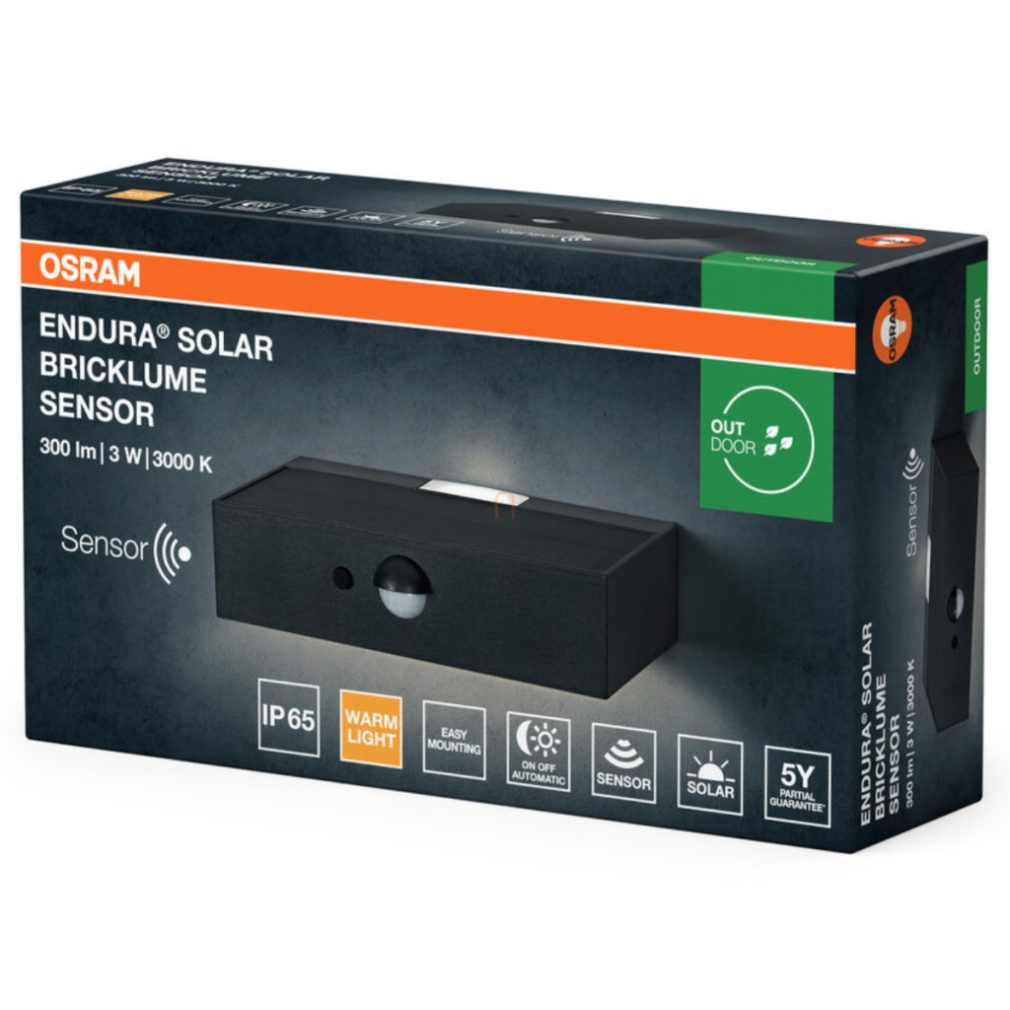 Lampa LED solară de exterior Osram Endura Solar Bricklume cu senzor de mișcare, gri închis