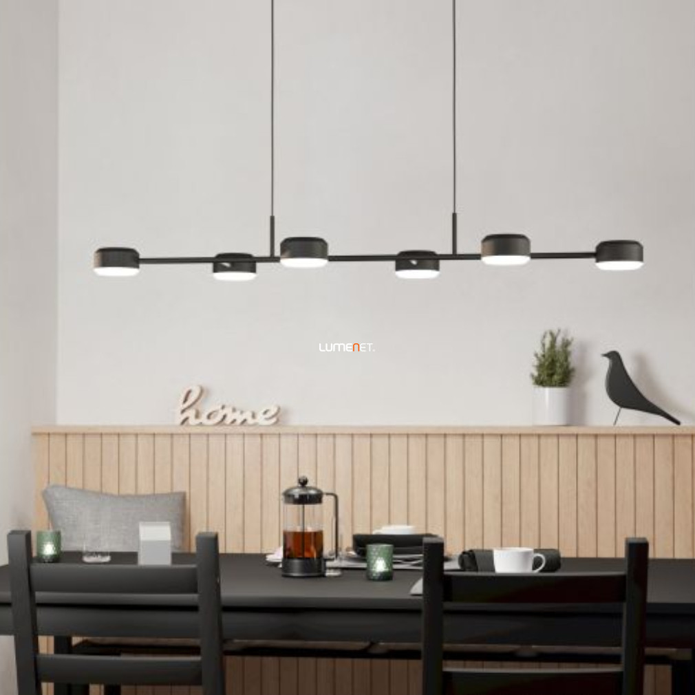 Lampa suspendată cu LED Clavellina Eglo 900352 are o putere nominală de 42 W și un flux luminos de 4800 lumeni, oferind o lumină albă caldă cu o temperatură de culoare de 3000 K. Lampa este echipată cu o funcție de reglare a intensității luminoase, astfel încât luminozitatea poate fi ajustată în funcție de necesități. Produsul este realizat într-o combinație de culori alb-negru, într-un stil de designer, din oțel și plastic. Modulul LED încorporat este inclus, iar corpul de iluminat are un grad de protecție IP20. Dimensiuni: 1200 mm lungime, 400 mm lățime, 1100 mm înălțime, greutate 2,25 kg. Lampa este concepută pentru iluminatul rezidențial și este potrivită în special pentru utilizarea în interioare moderne.